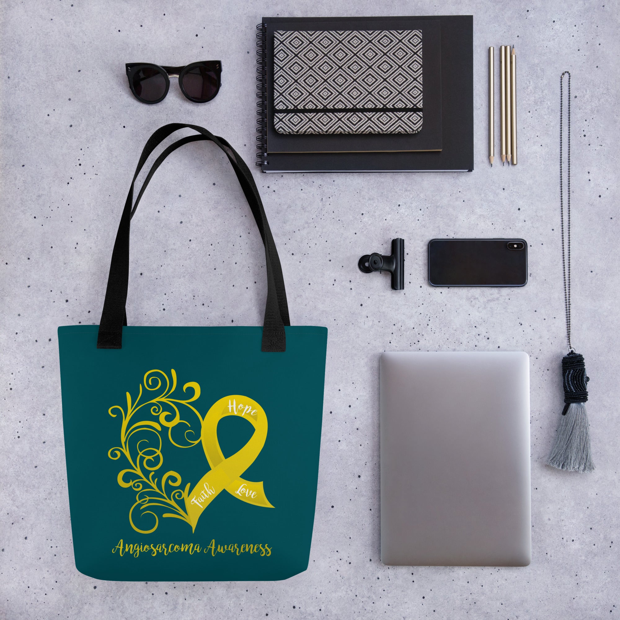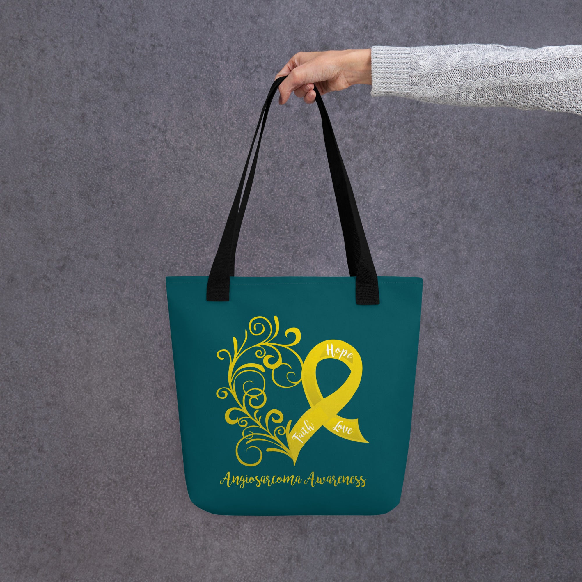 Angiosarcoma Awareness Heart Tote Bag (Dark Teal)(15 x 15)
