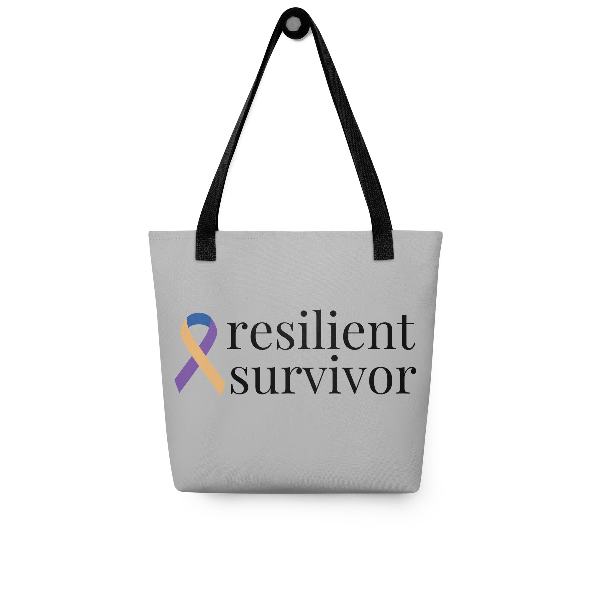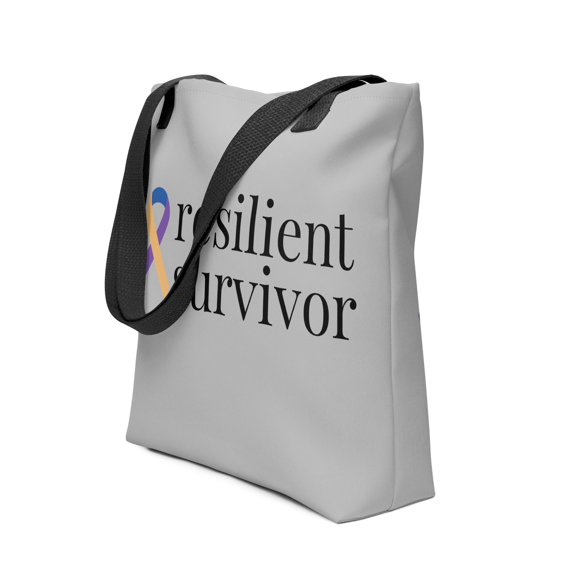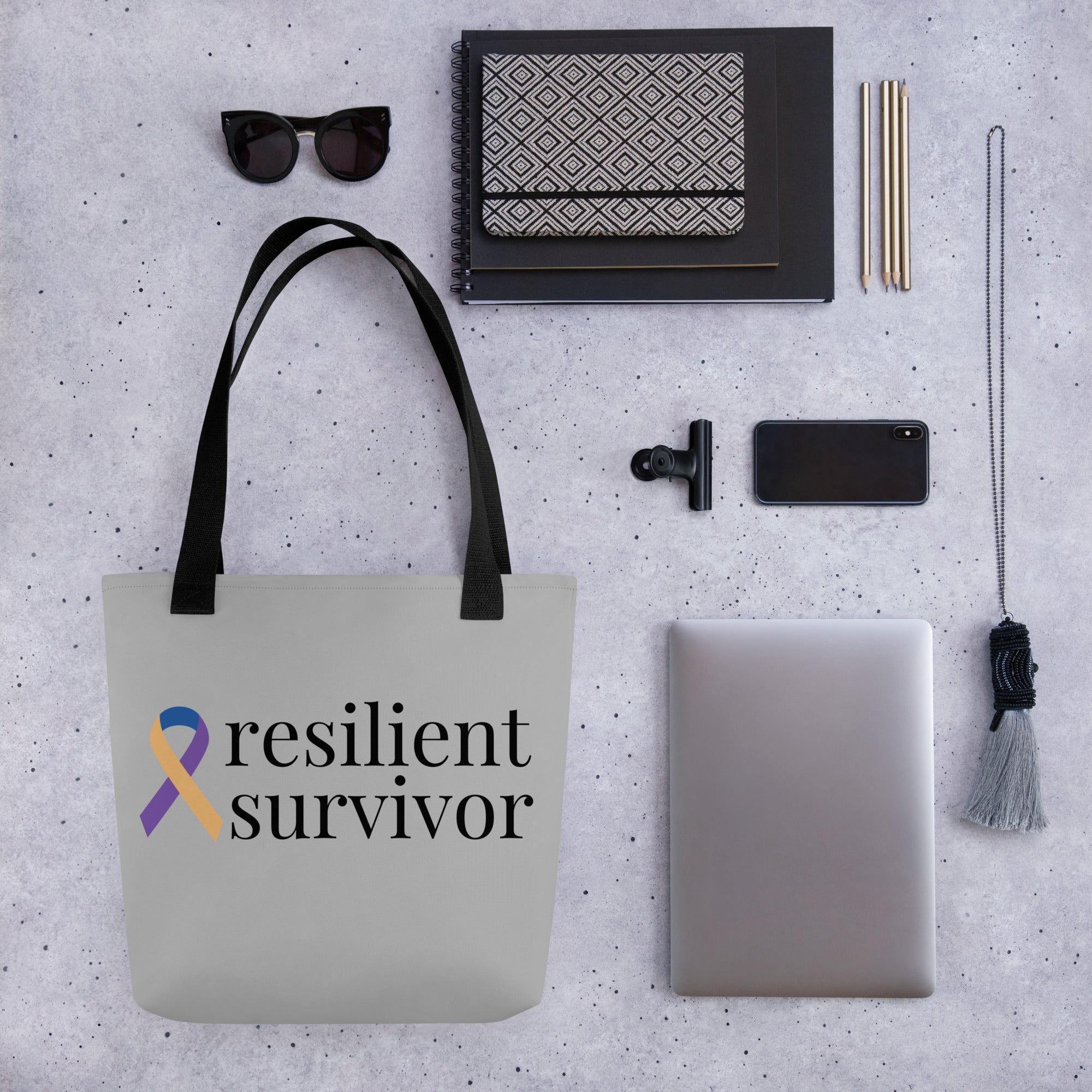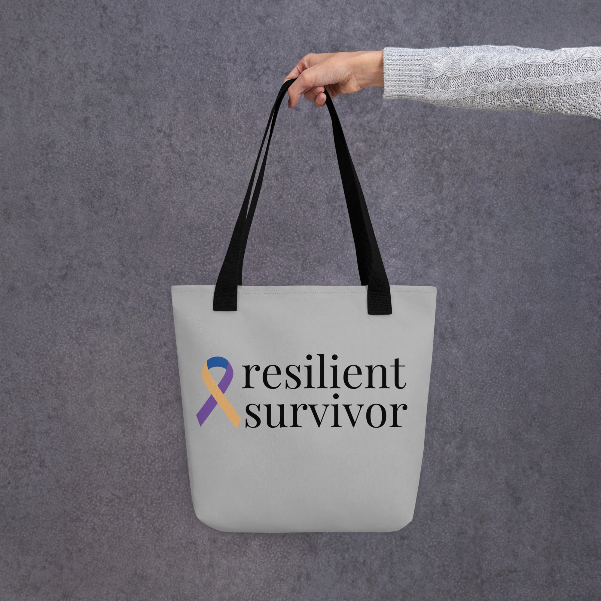 Bladder Cancer "resilient survivor" Ribbon Tote Bag (Light Gray)(15 x 15)