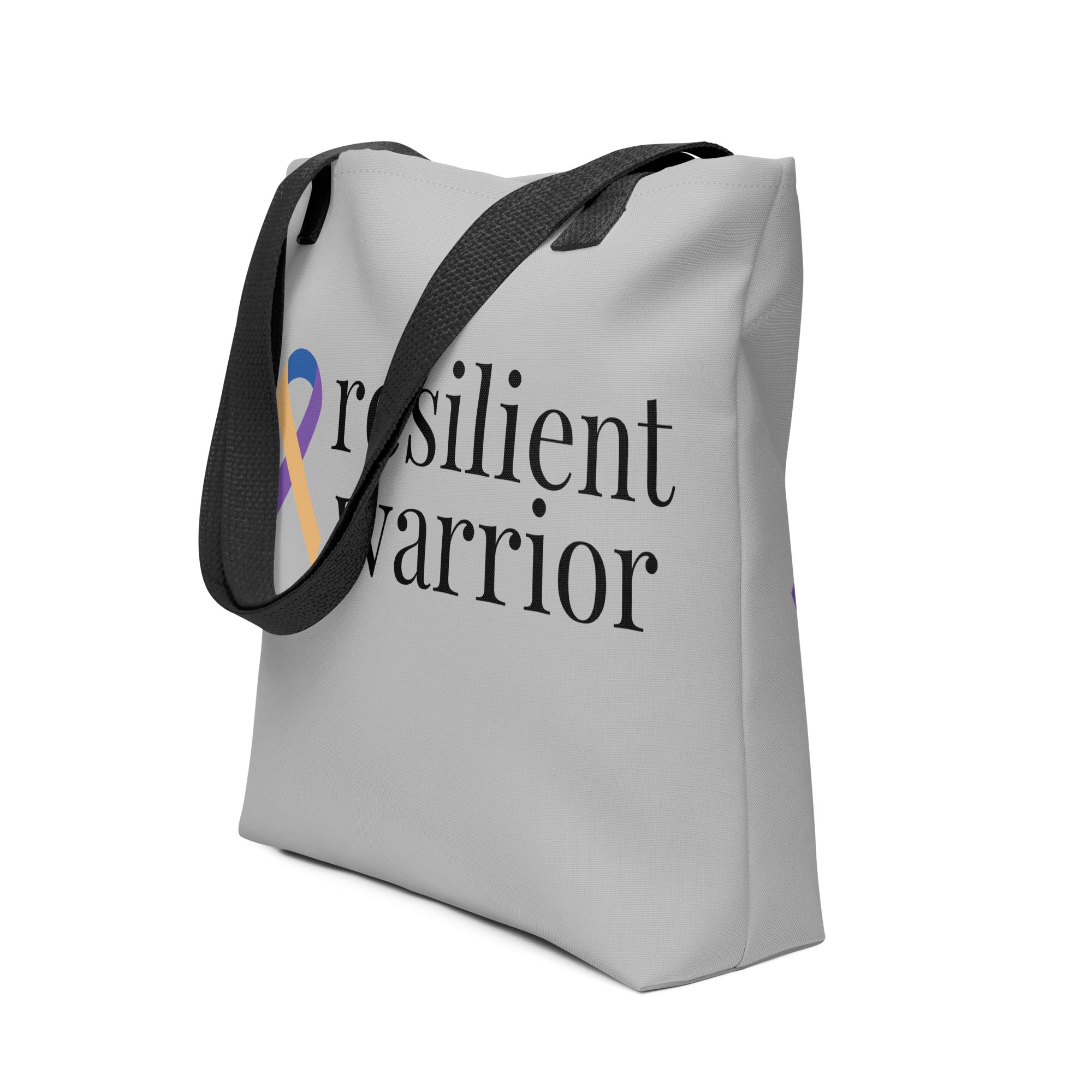 Bladder Cancer "resilient warrior" Ribbon Tote Bag (Light Gray)(15 x 15)