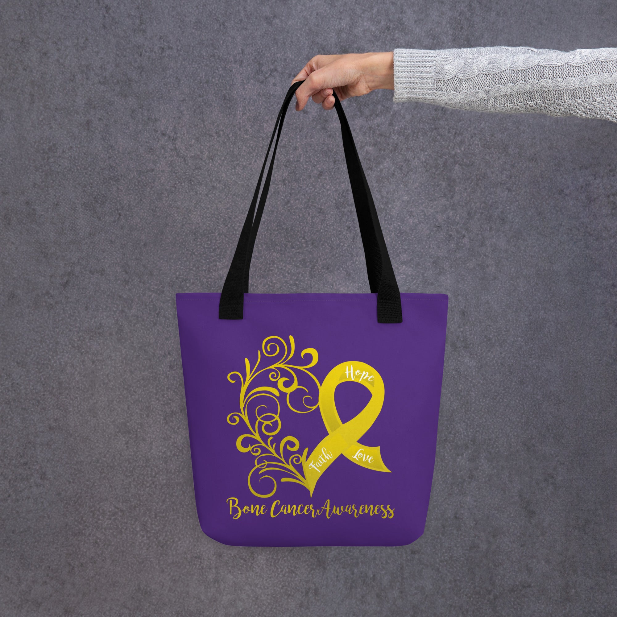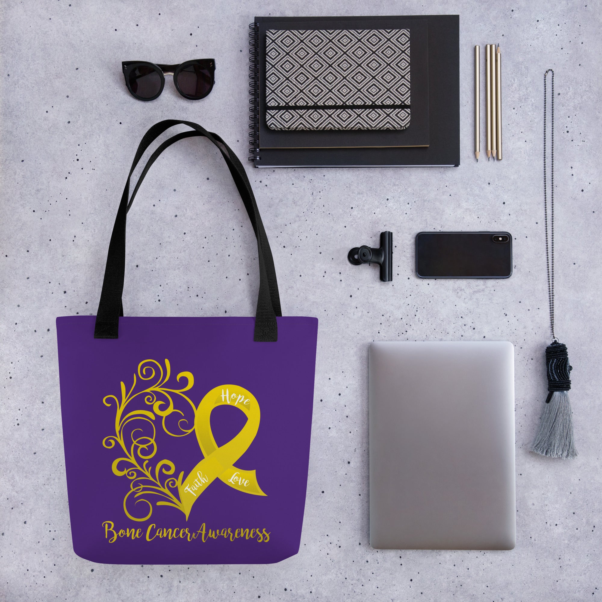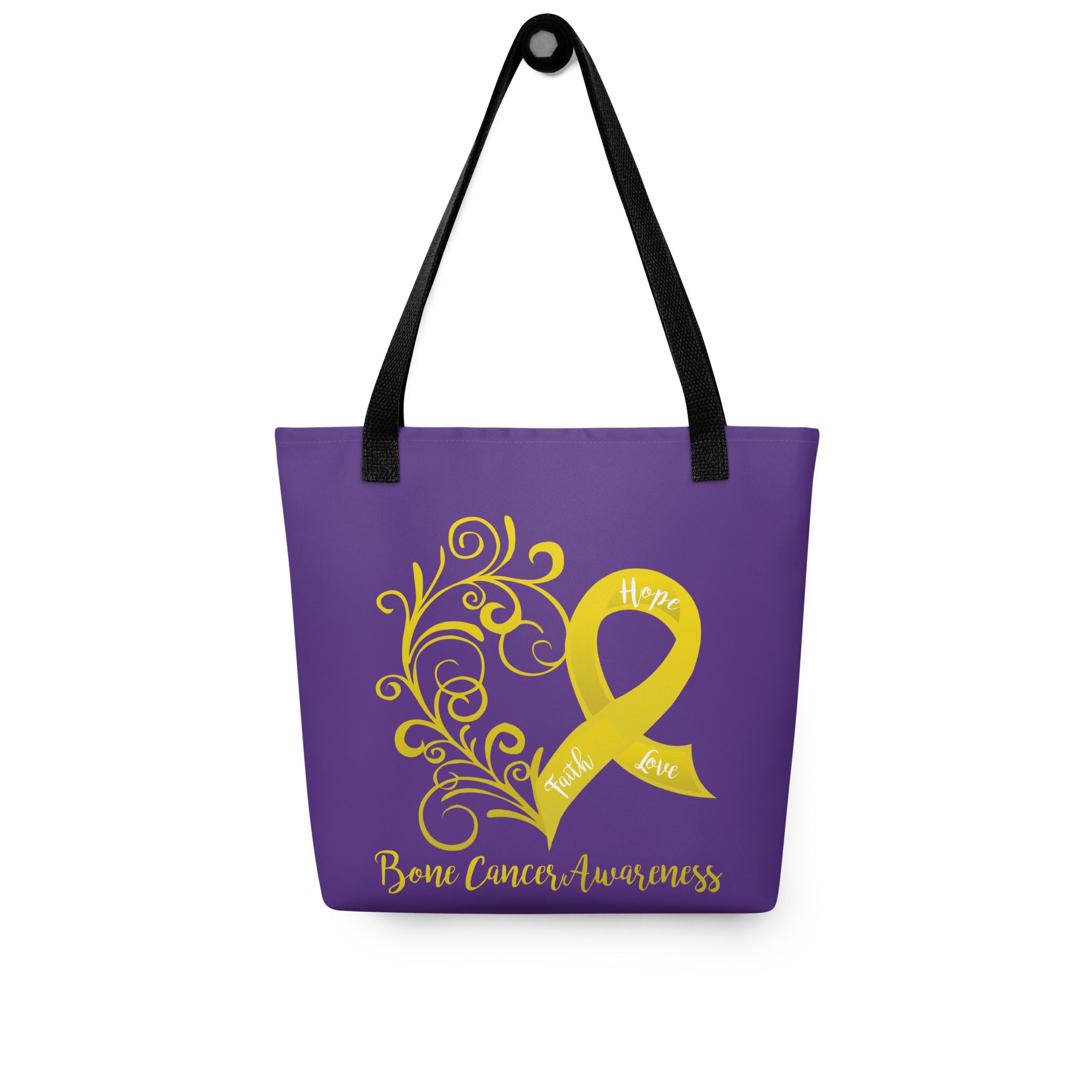 Bone Cancer Awareness Heart Tote Bag (Purple)(15 x 15)