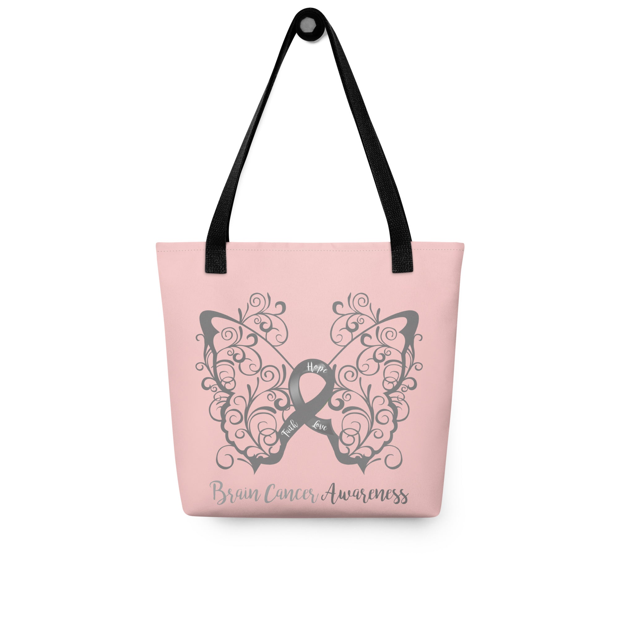 Brain Cancer Awareness Filigree Butterfly Tote Bag (Light Coral)(15 x 15)