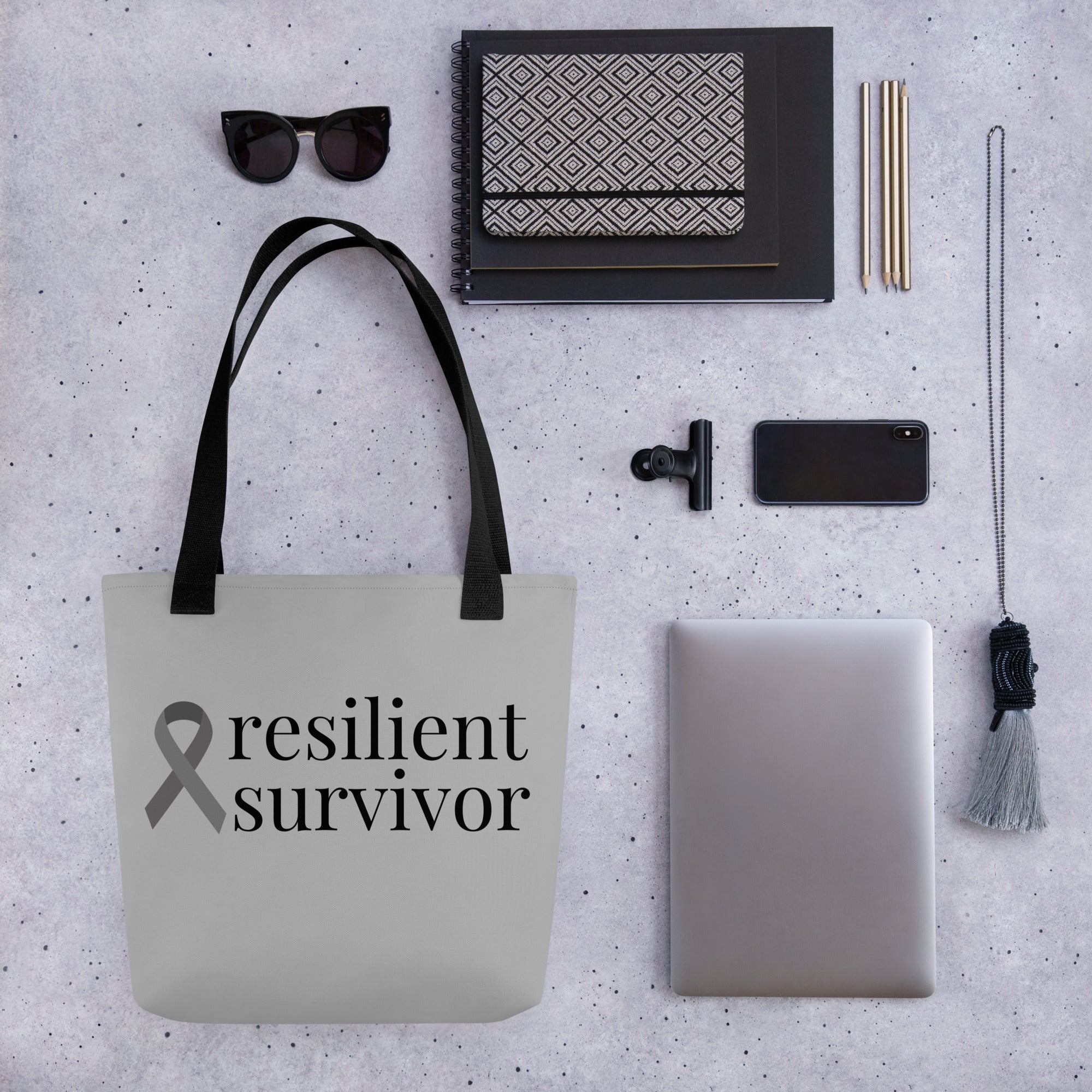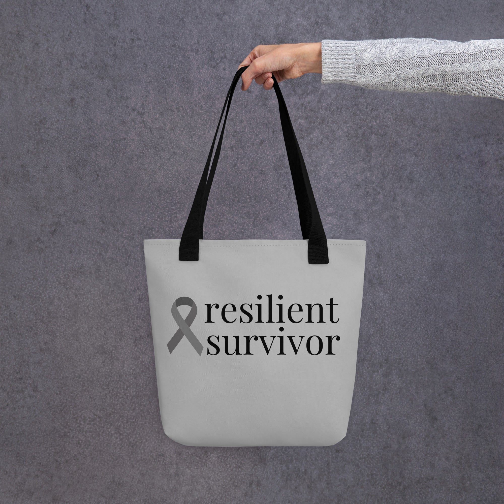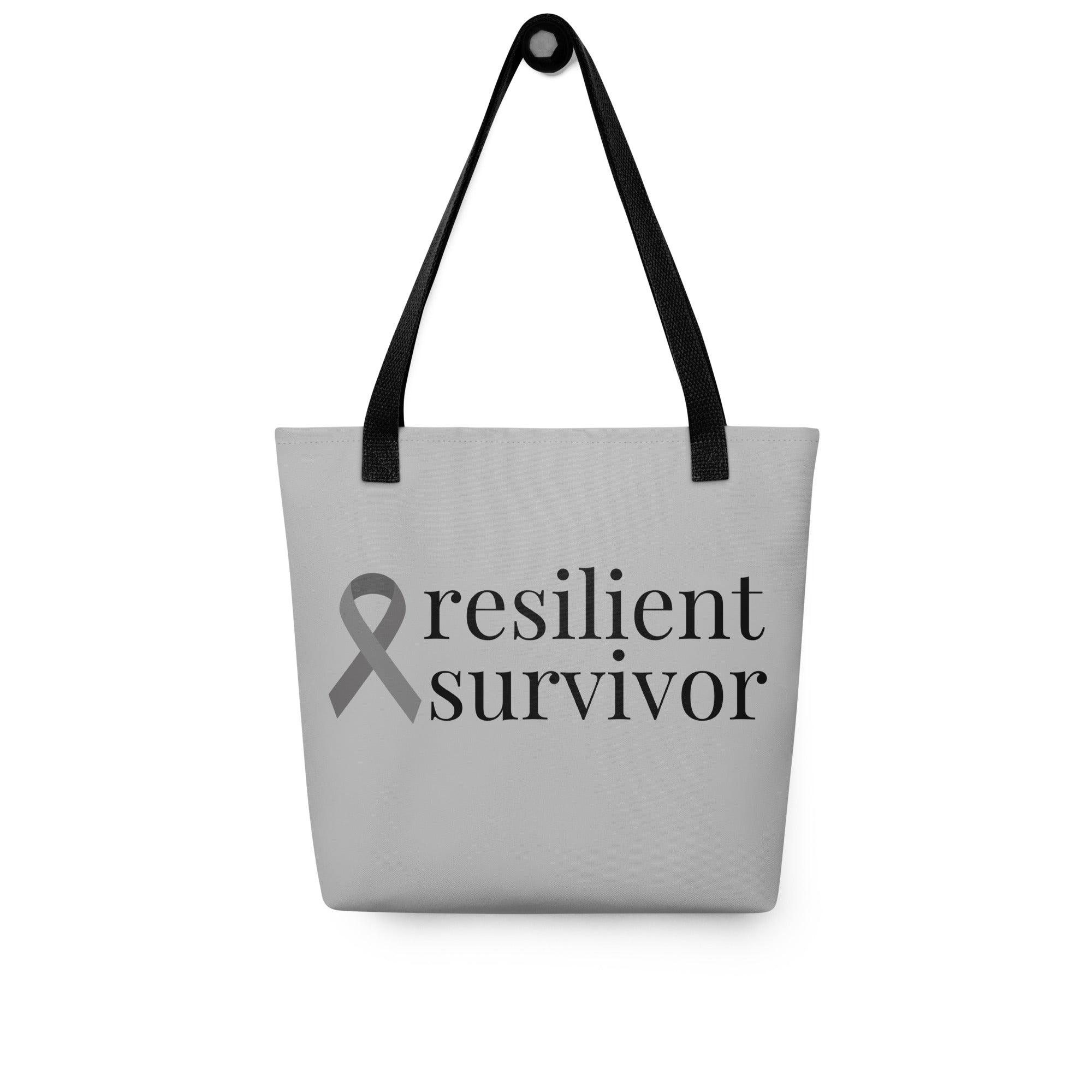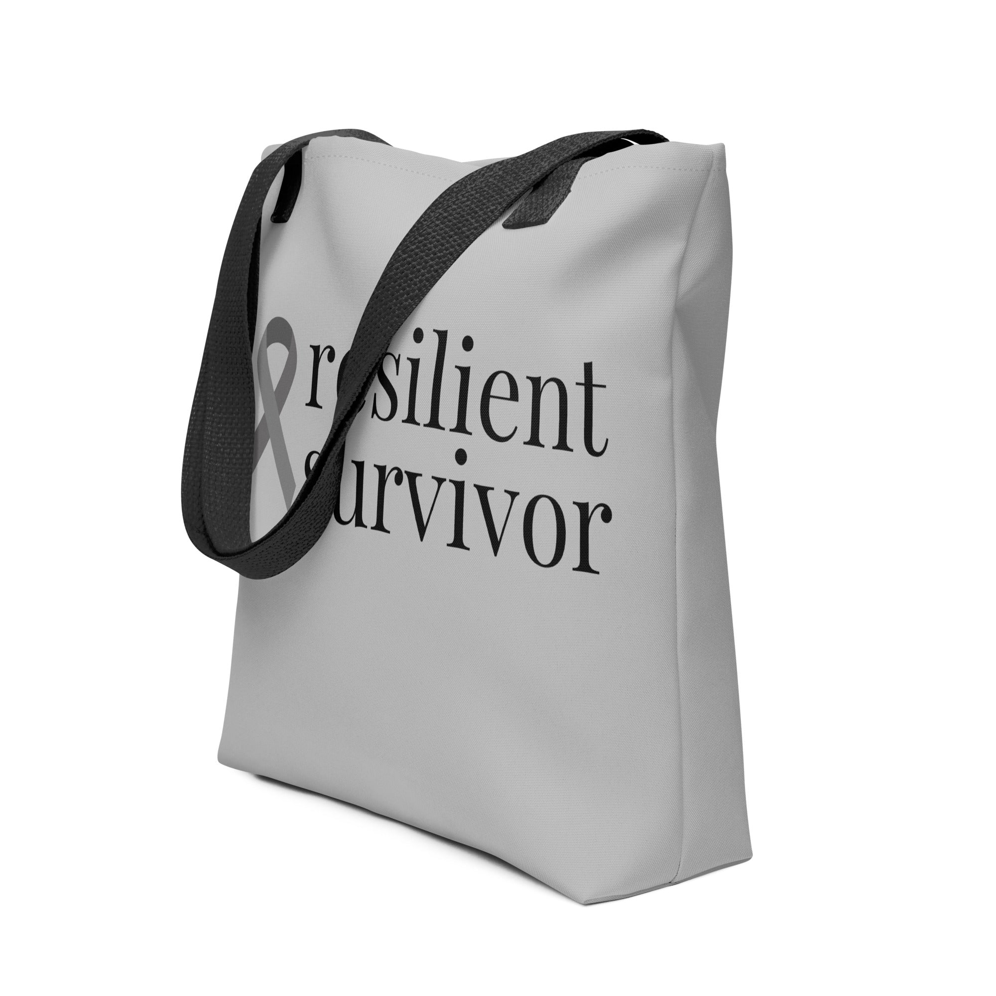 Brain Cancer "resilient survivor" Ribbon Tote Bag (Light Gray)(15 x 15)
