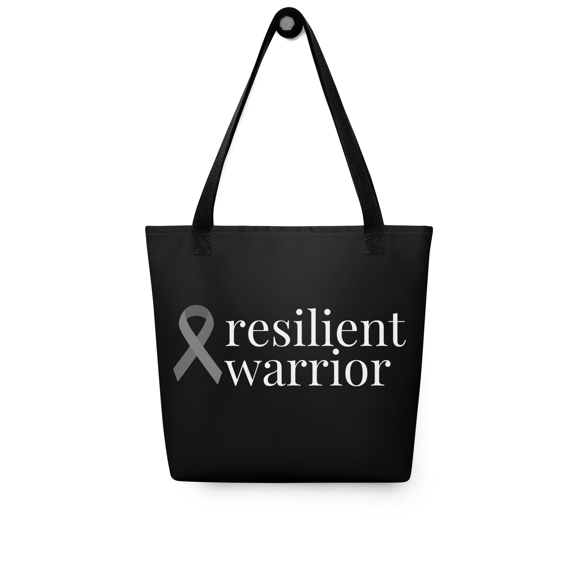 Brain Cancer "resilient warrior" Ribbon Tote Bag (Black)(15 x 15)