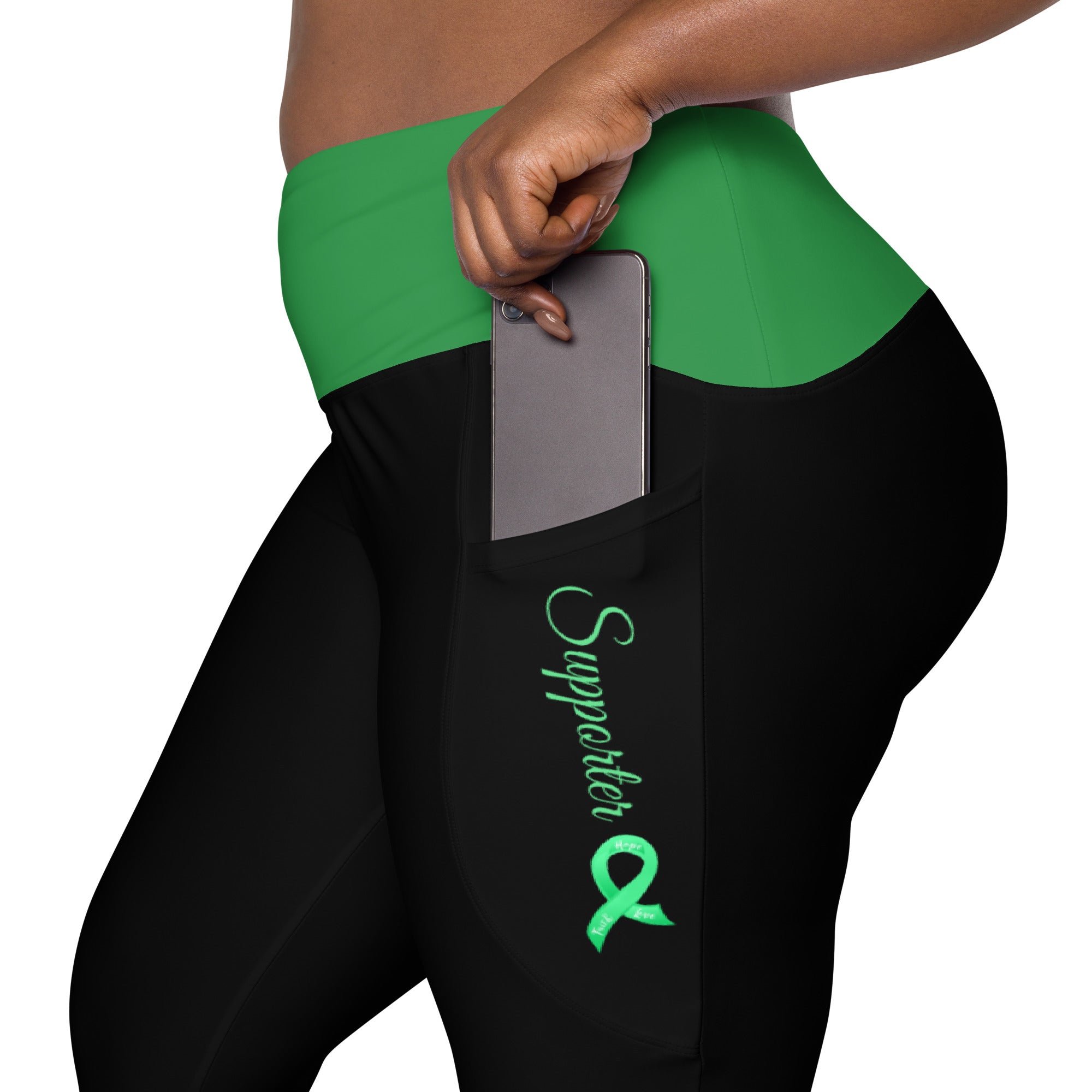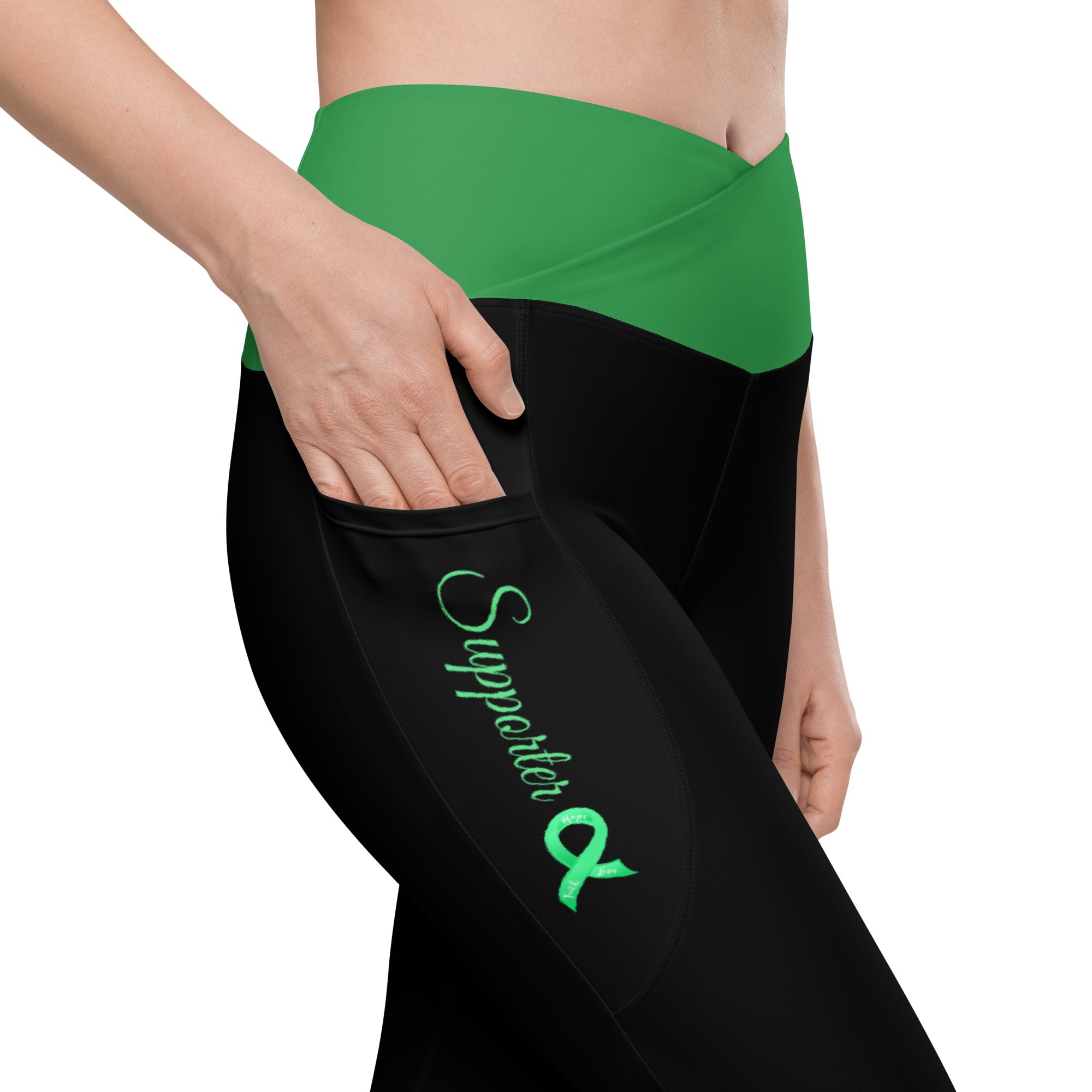 Bile Duct Cancer / Cholangiocarcinoma "Supporter" Ribbon Crossover Leggings with Pockets