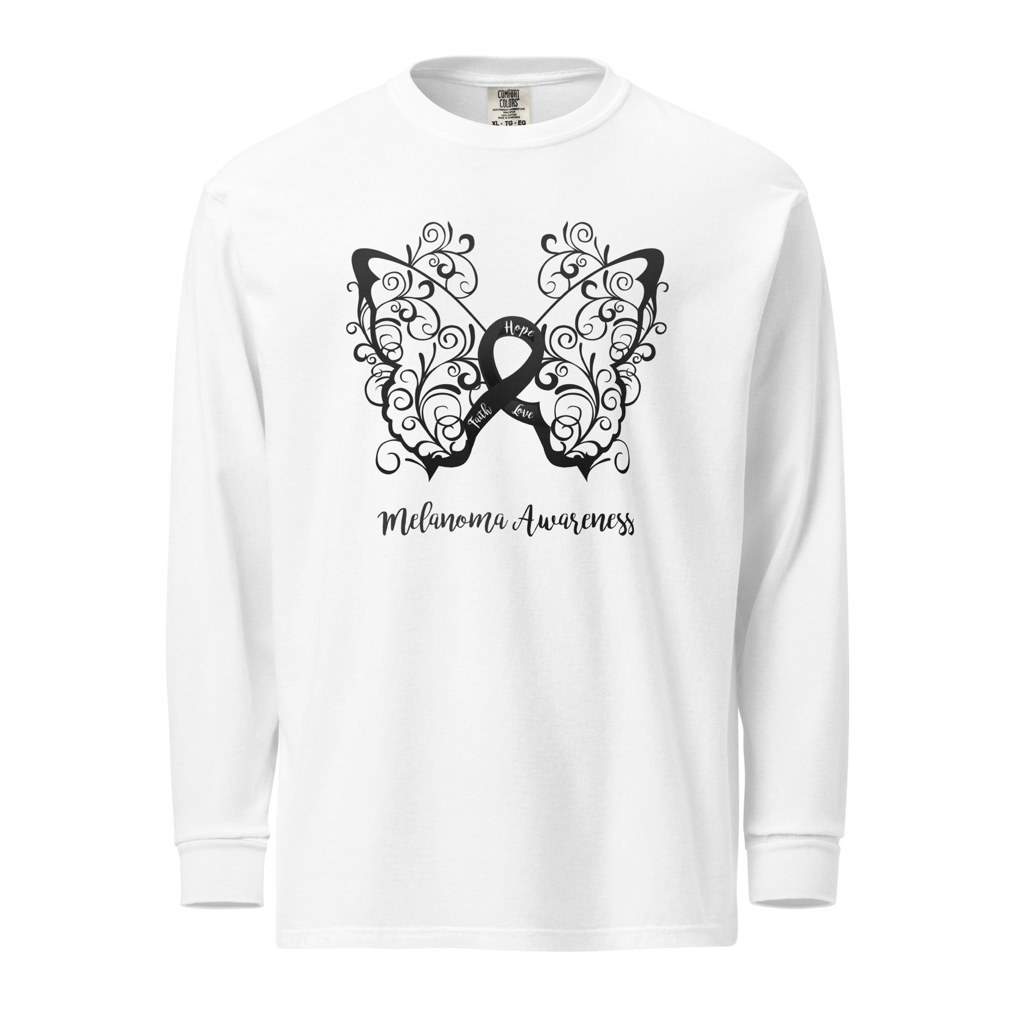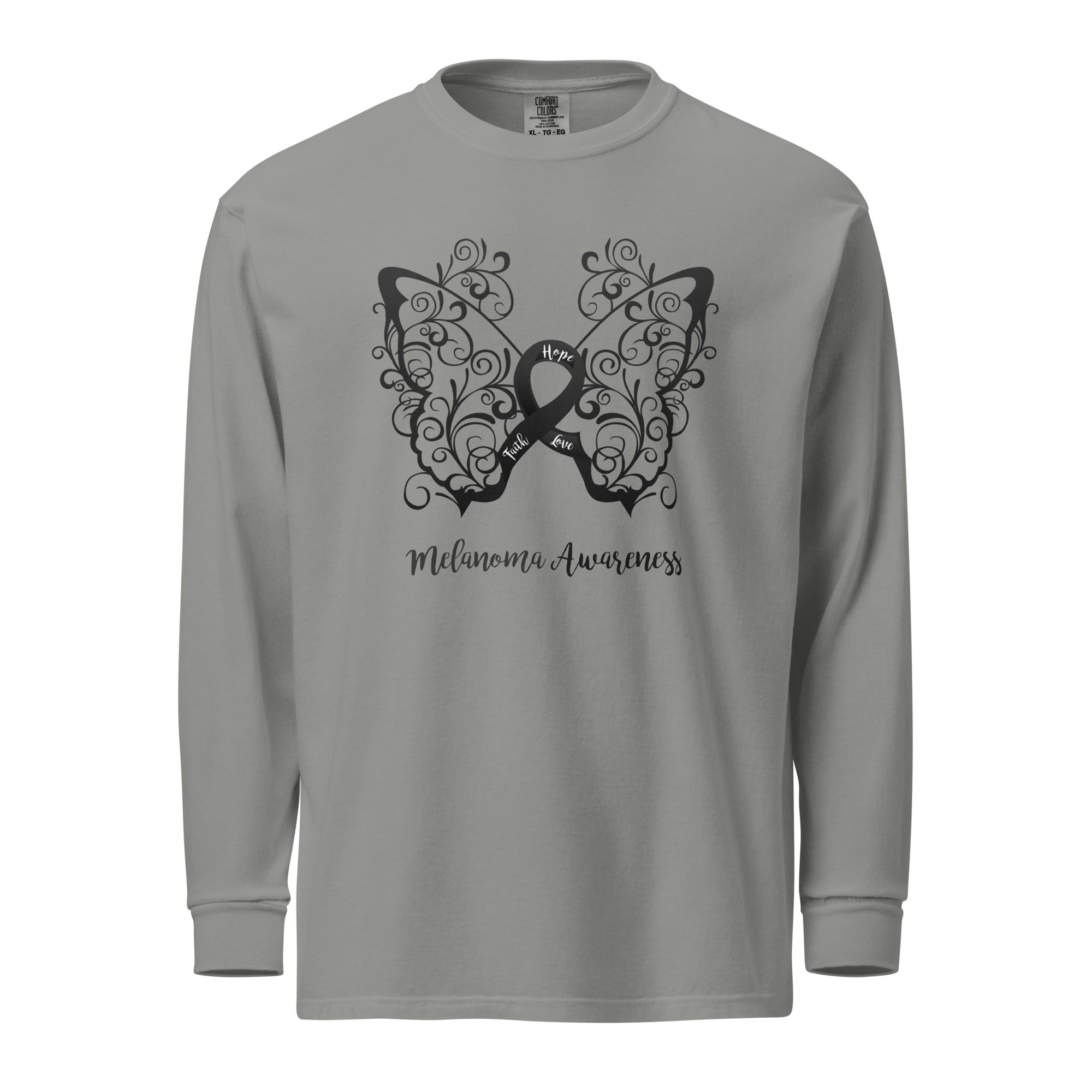 Melanoma Awareness Filigree Butterfly Garment-Dyed Heavyweight Long-Sleeve shirt