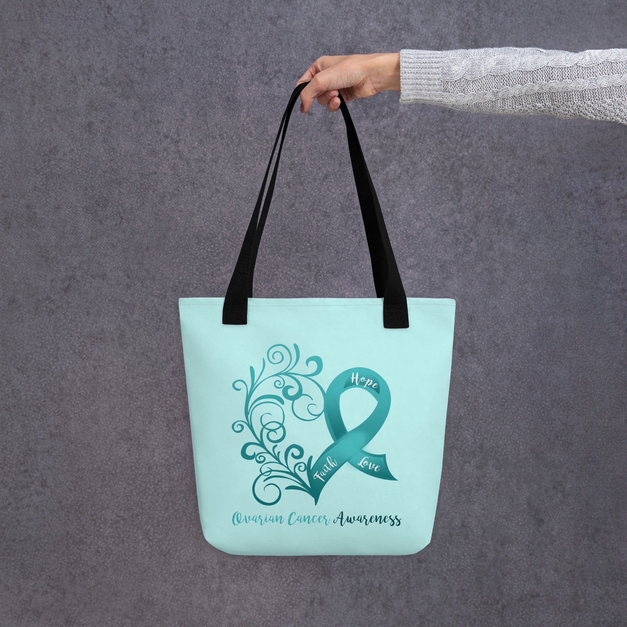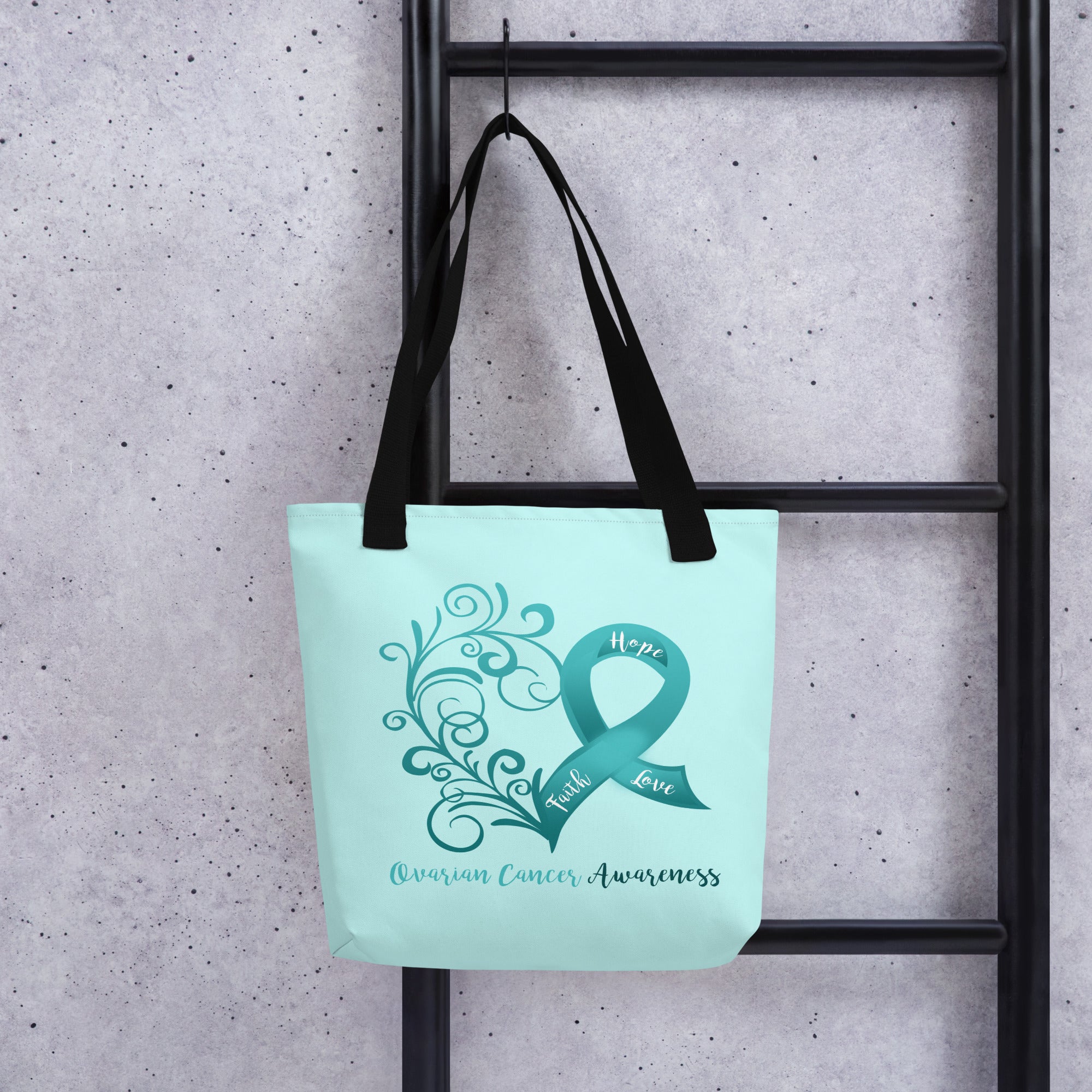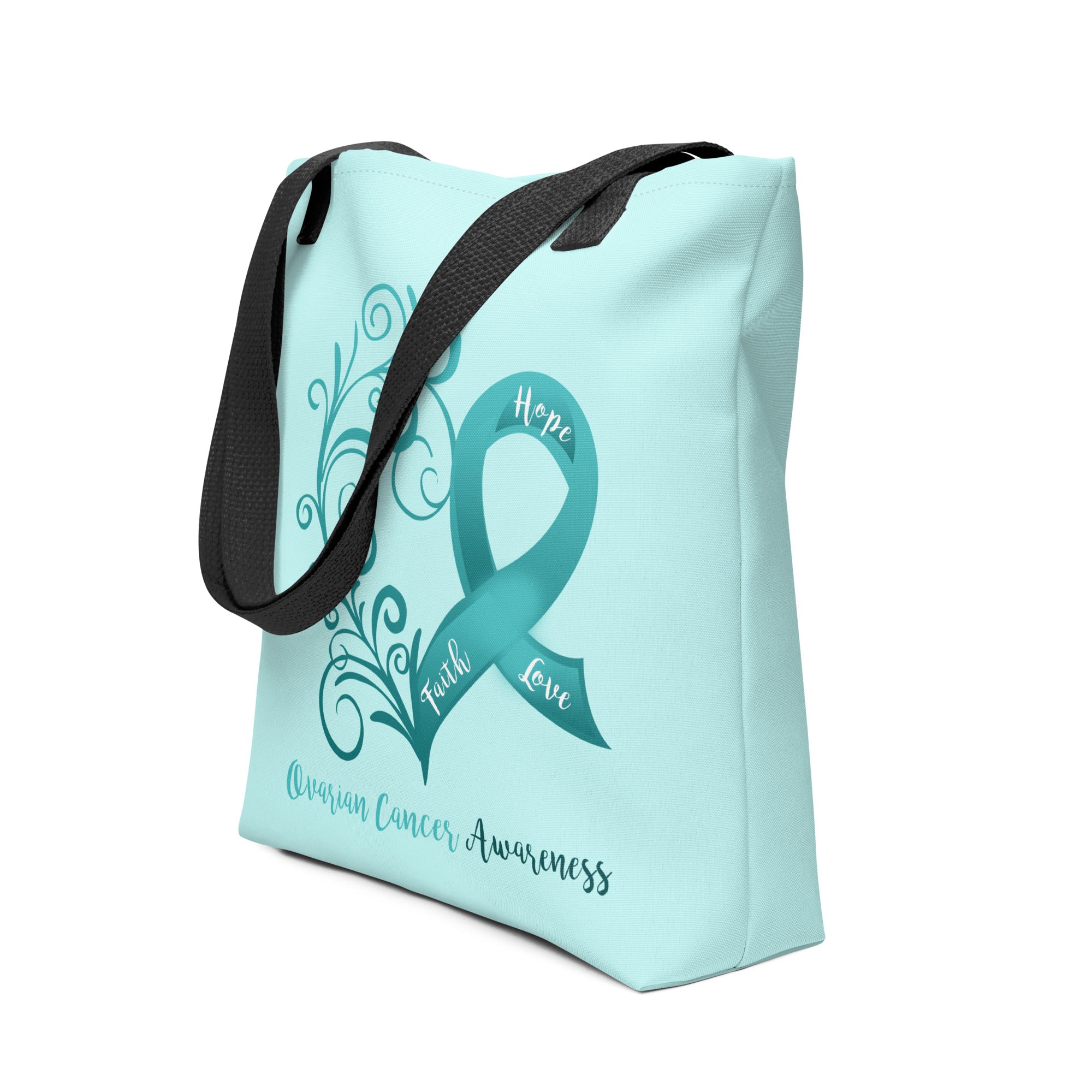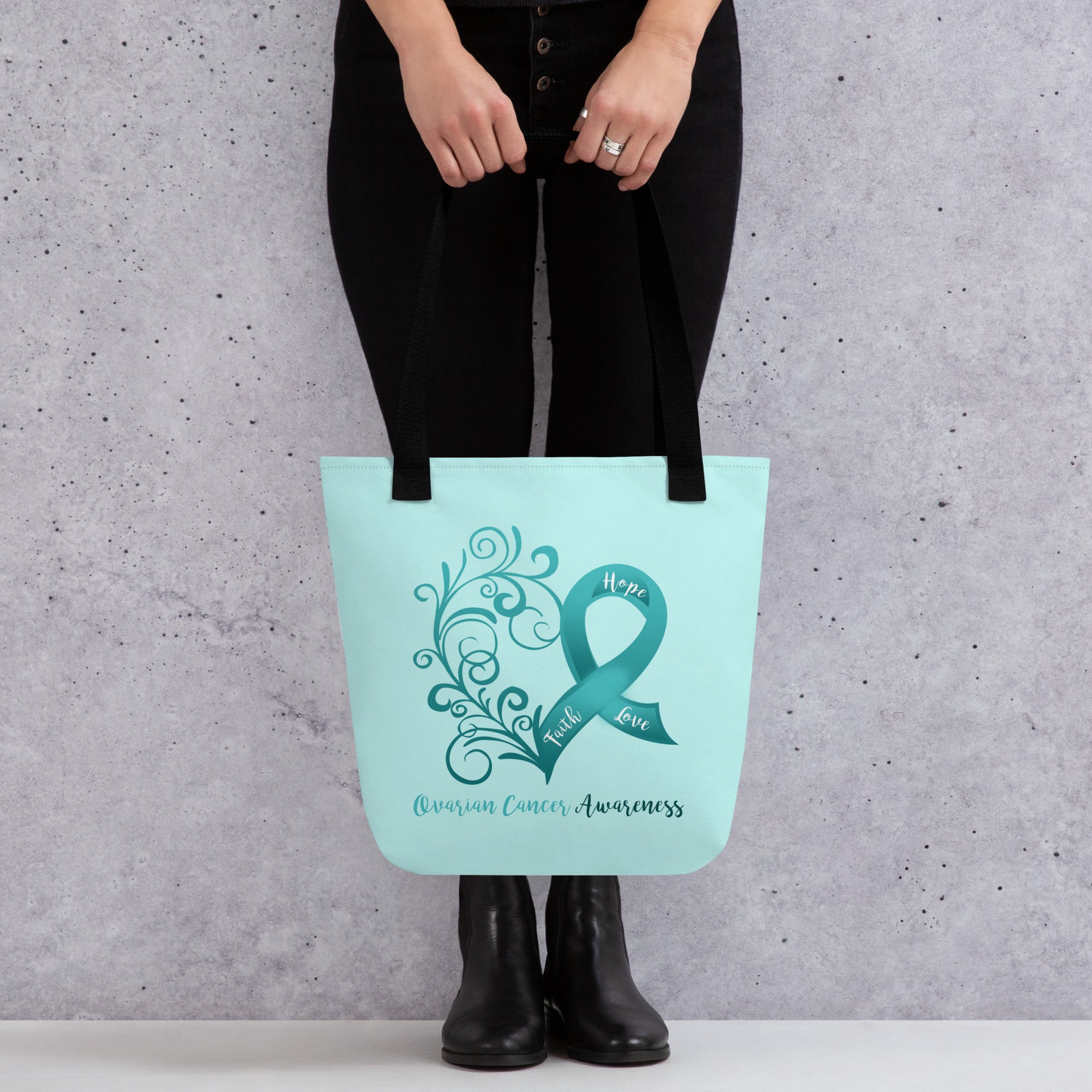 Ovarian Cancer Awareness Heart Light Teal Large Tote Bag