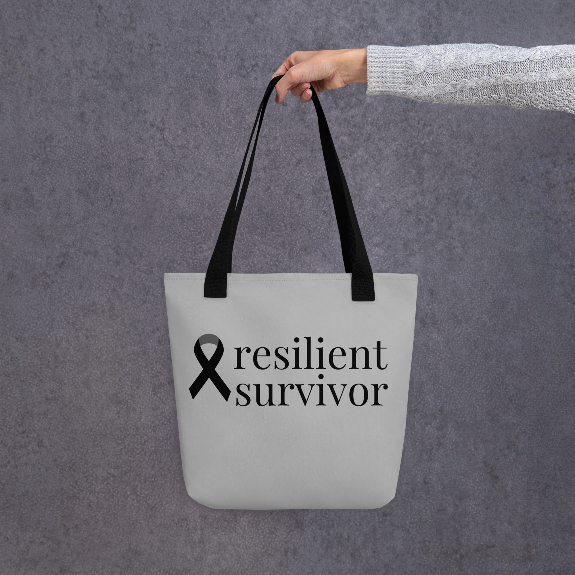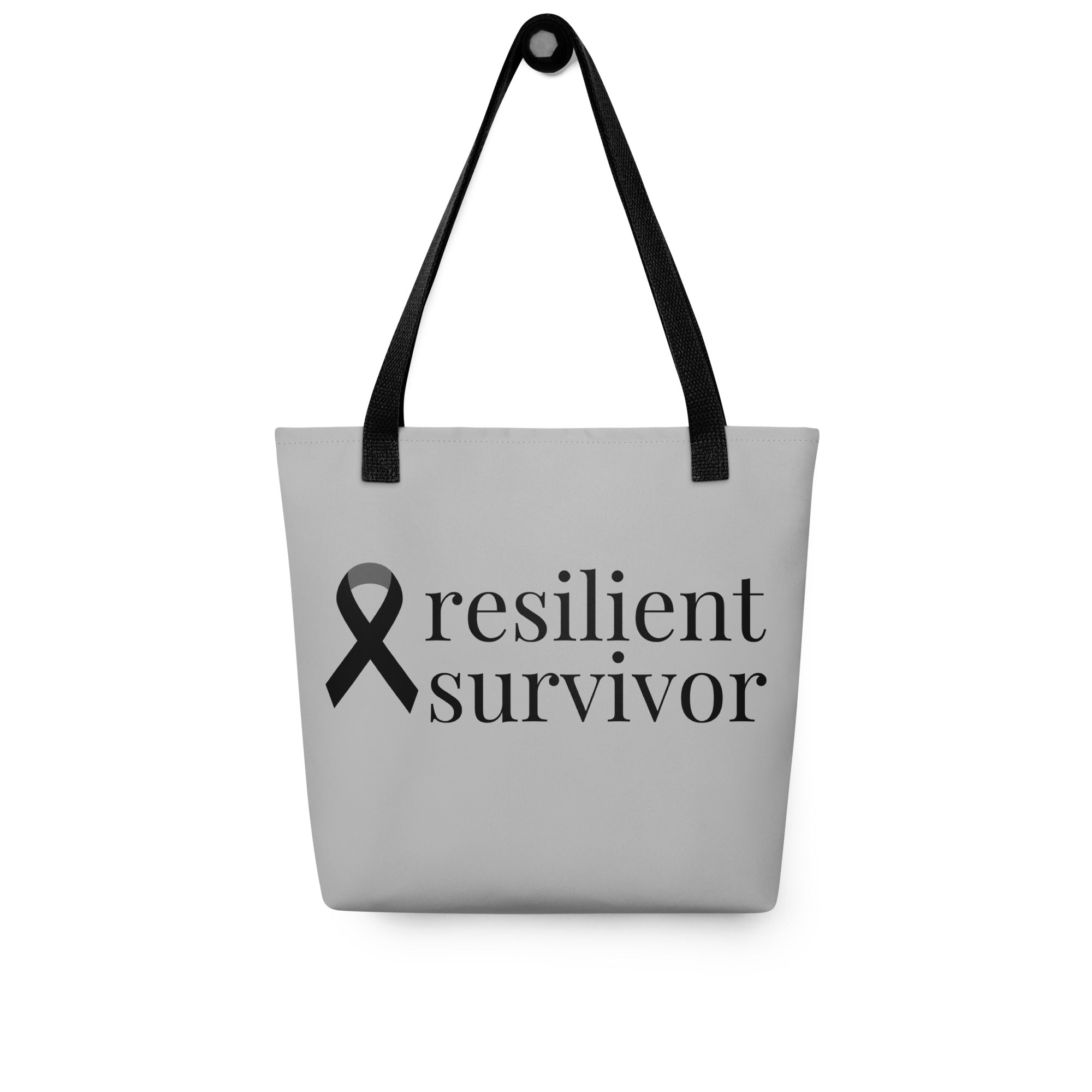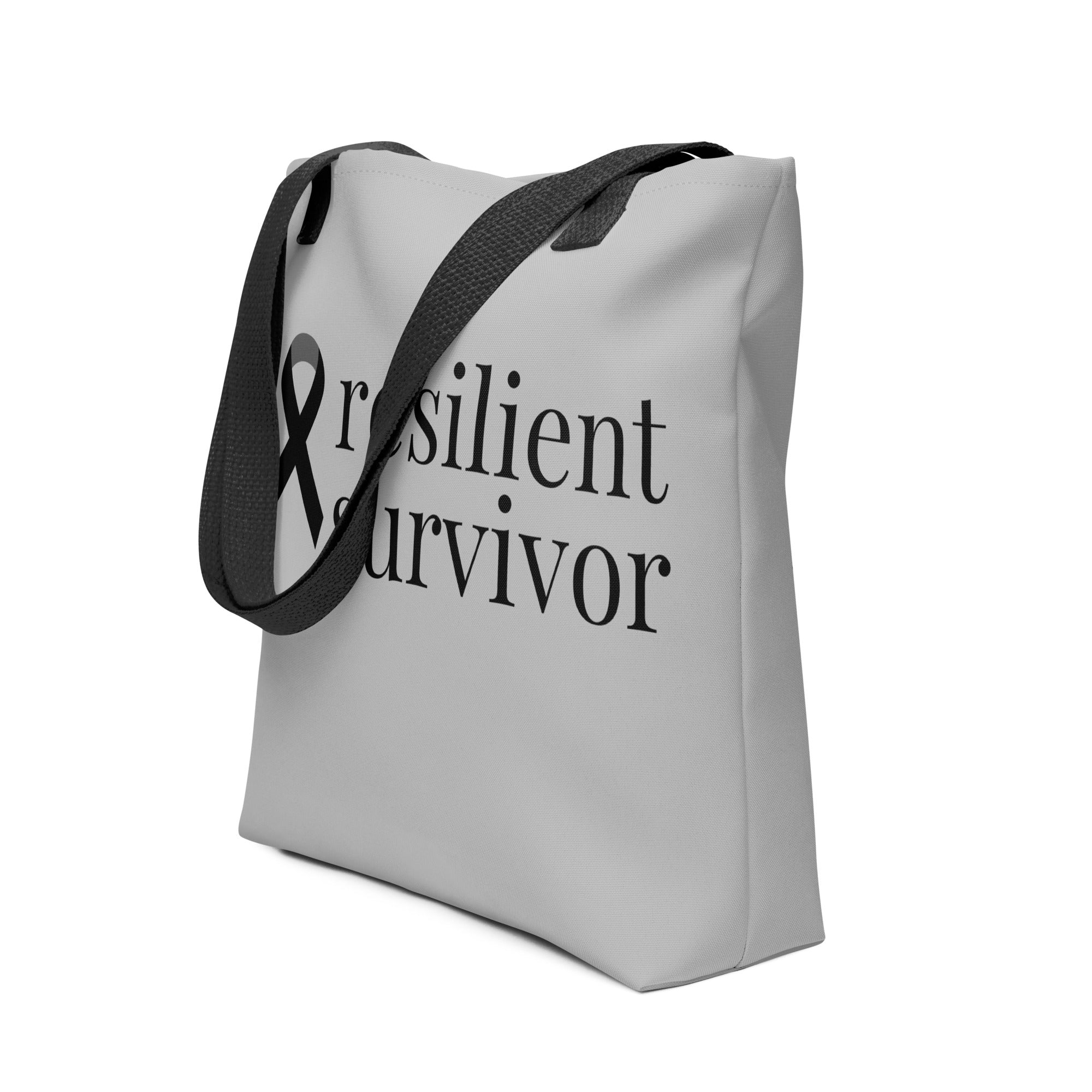 Melanoma / Skin Cancer "resilient survivor" Ribbon Tote Bag (Light Gray)(15 x 15)