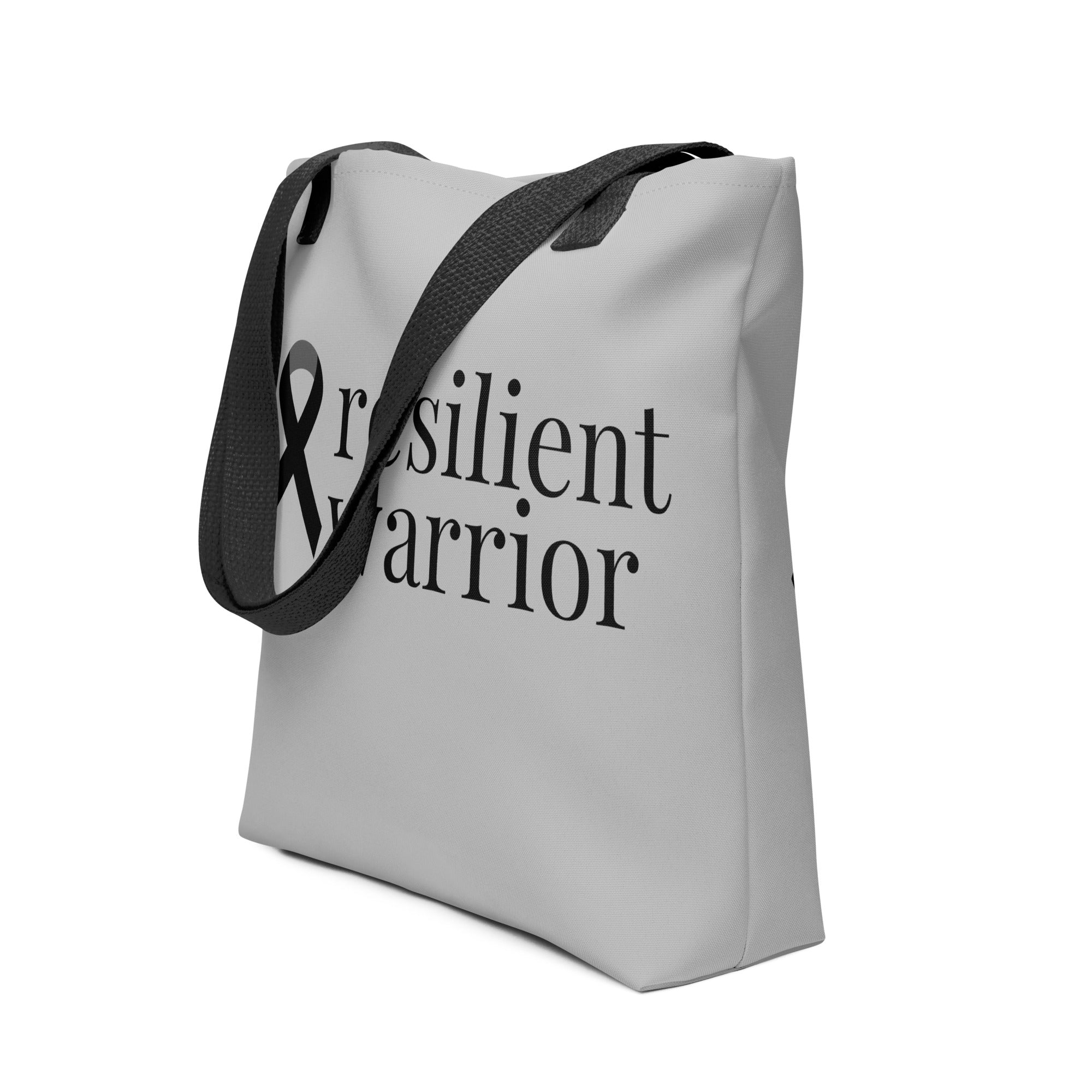 Melanoma / Skin Cancer "resilient warrior" Ribbon Tote Bag (Light Gray)(15 x 15)