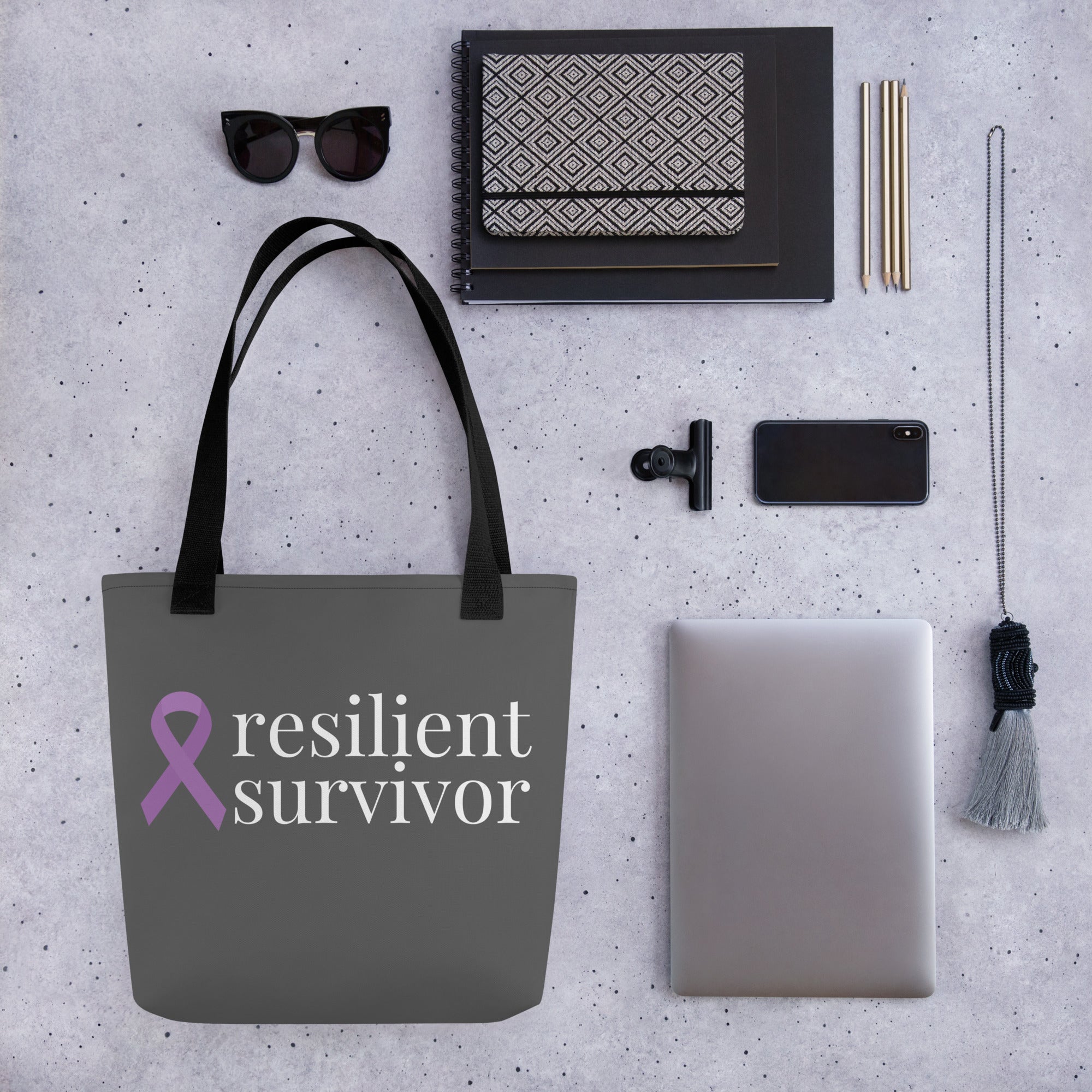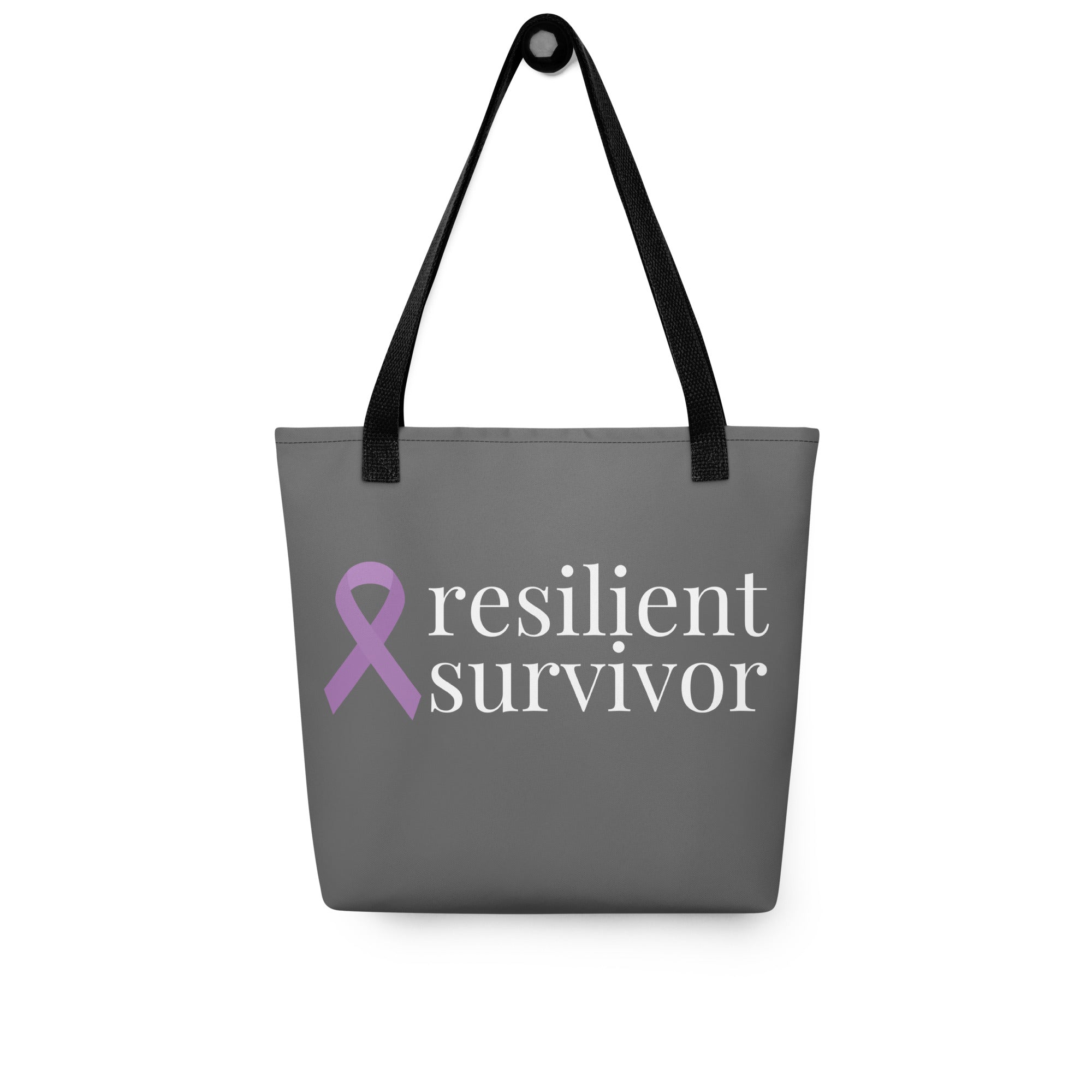 Testicular Cancer "resilient survivor" Ribbon Tote Bag (Dark Grey)(15 x 15)