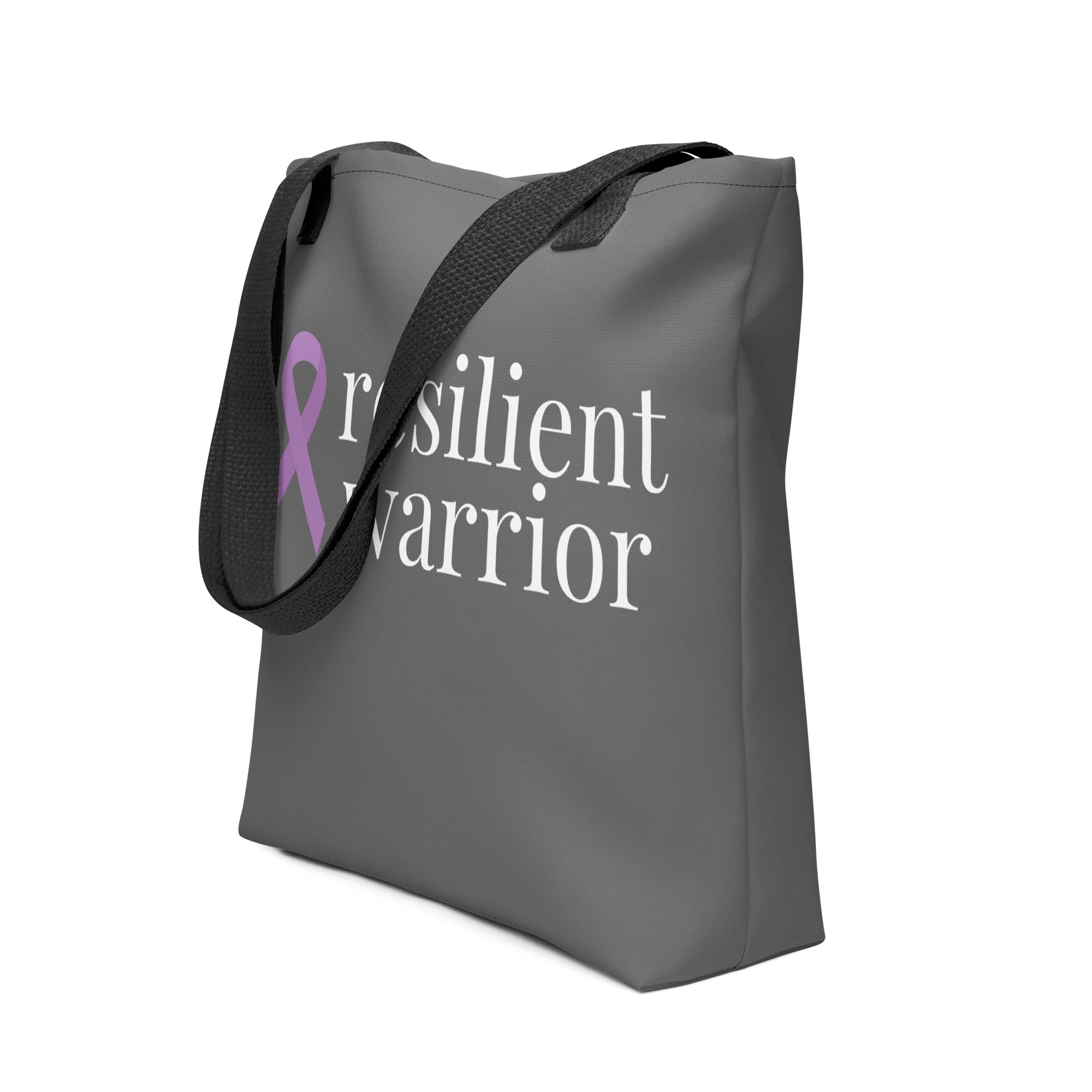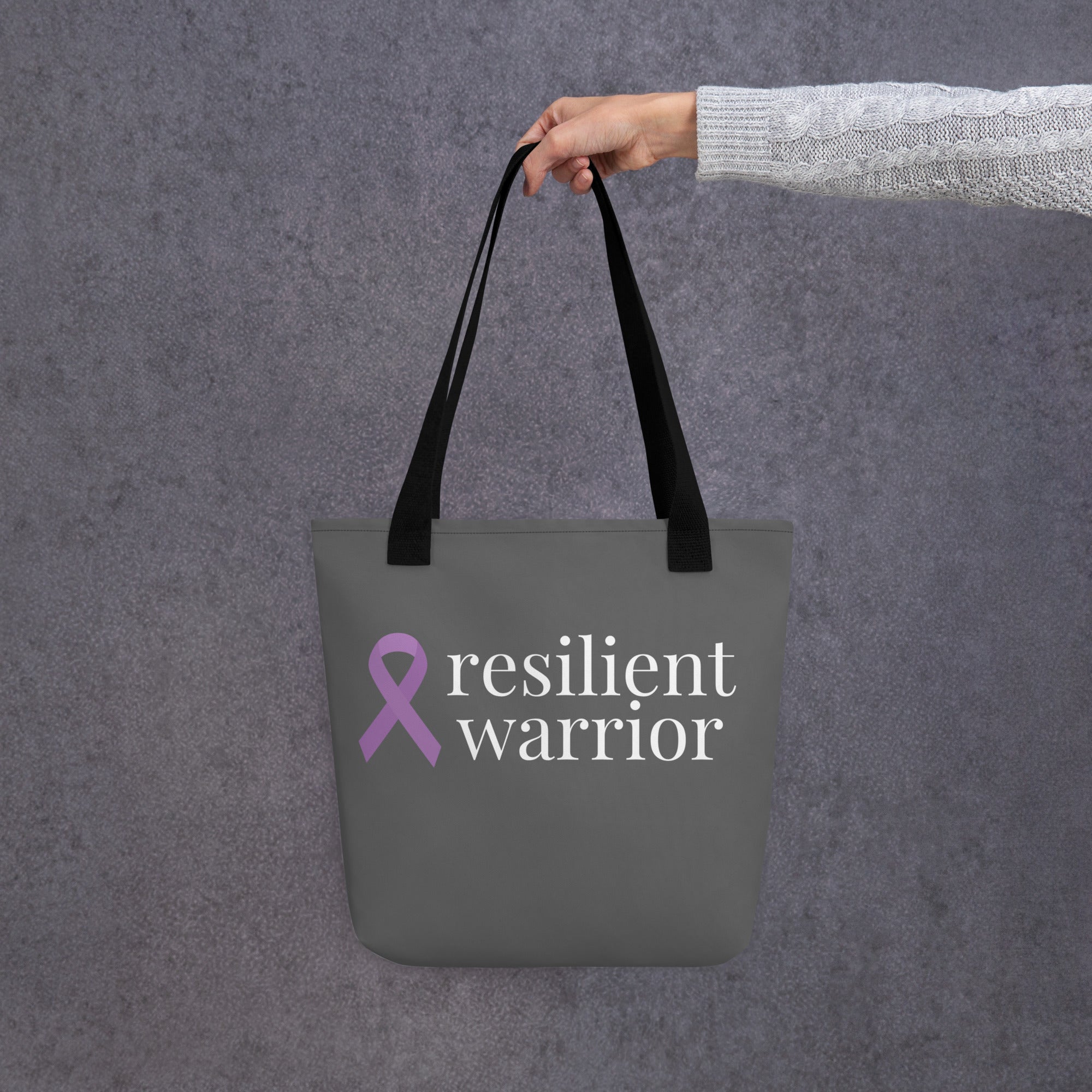 Testicular Cancer "resilient warrior" Ribbon Tote Bag (Dark Grey)(15 x 15)