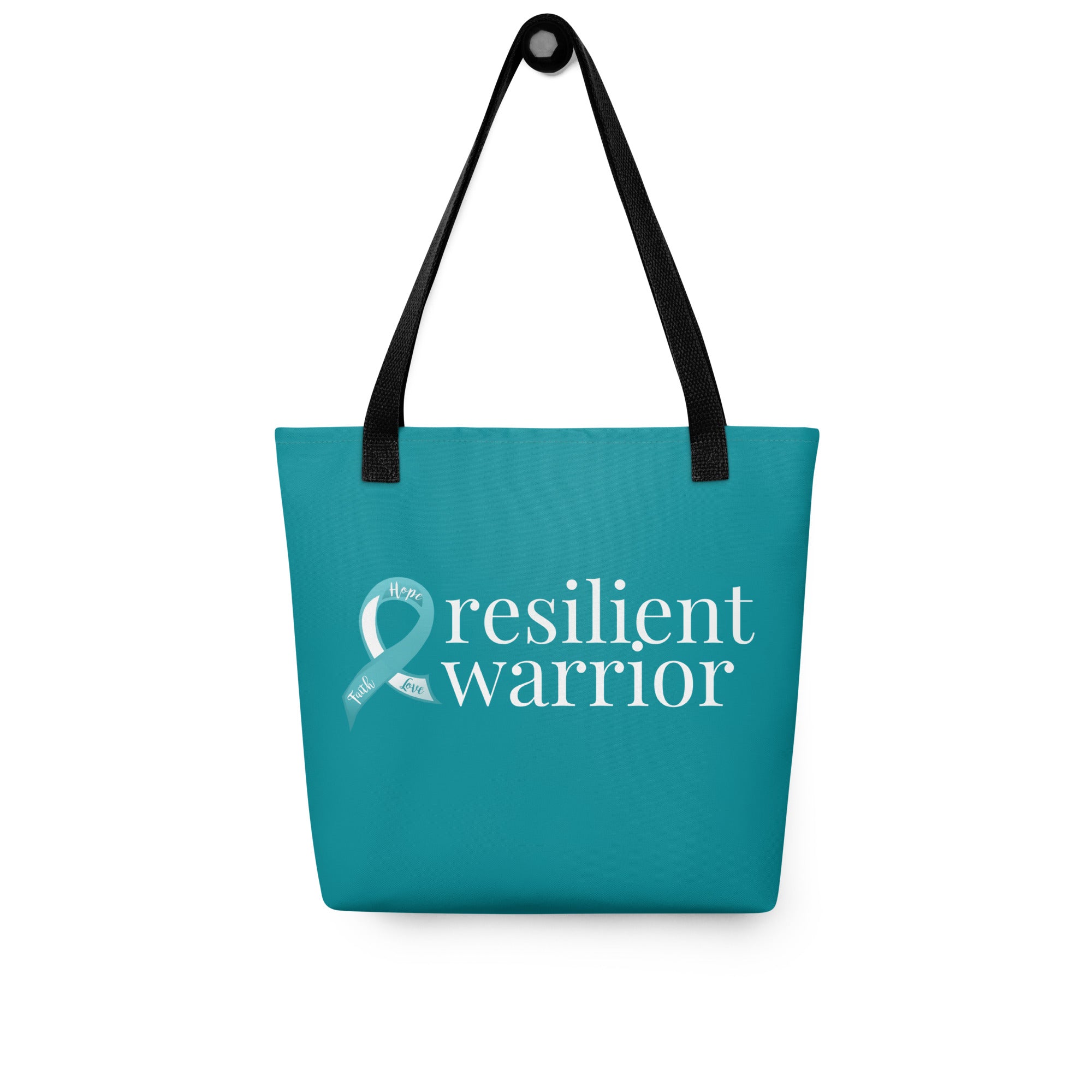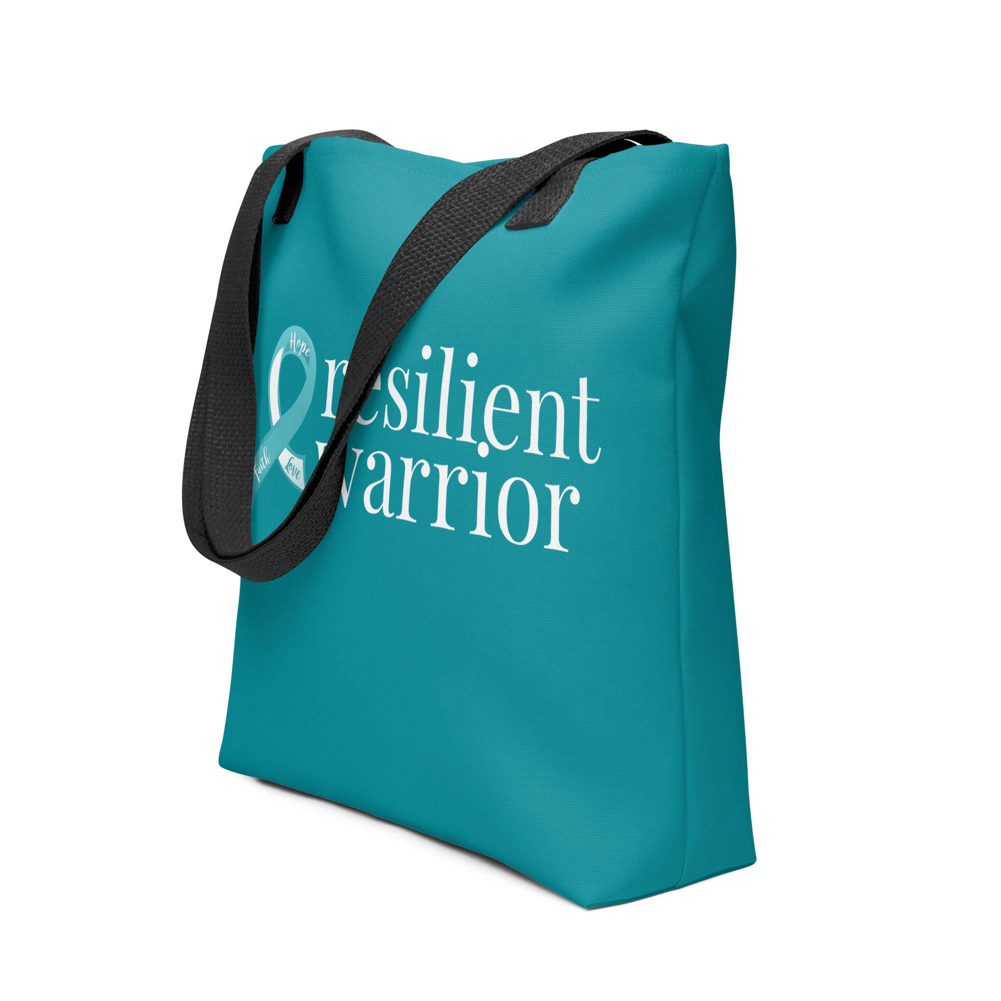 Cervical Cancer "resilient warrior" Tote Bag (Teal) (15 x15)