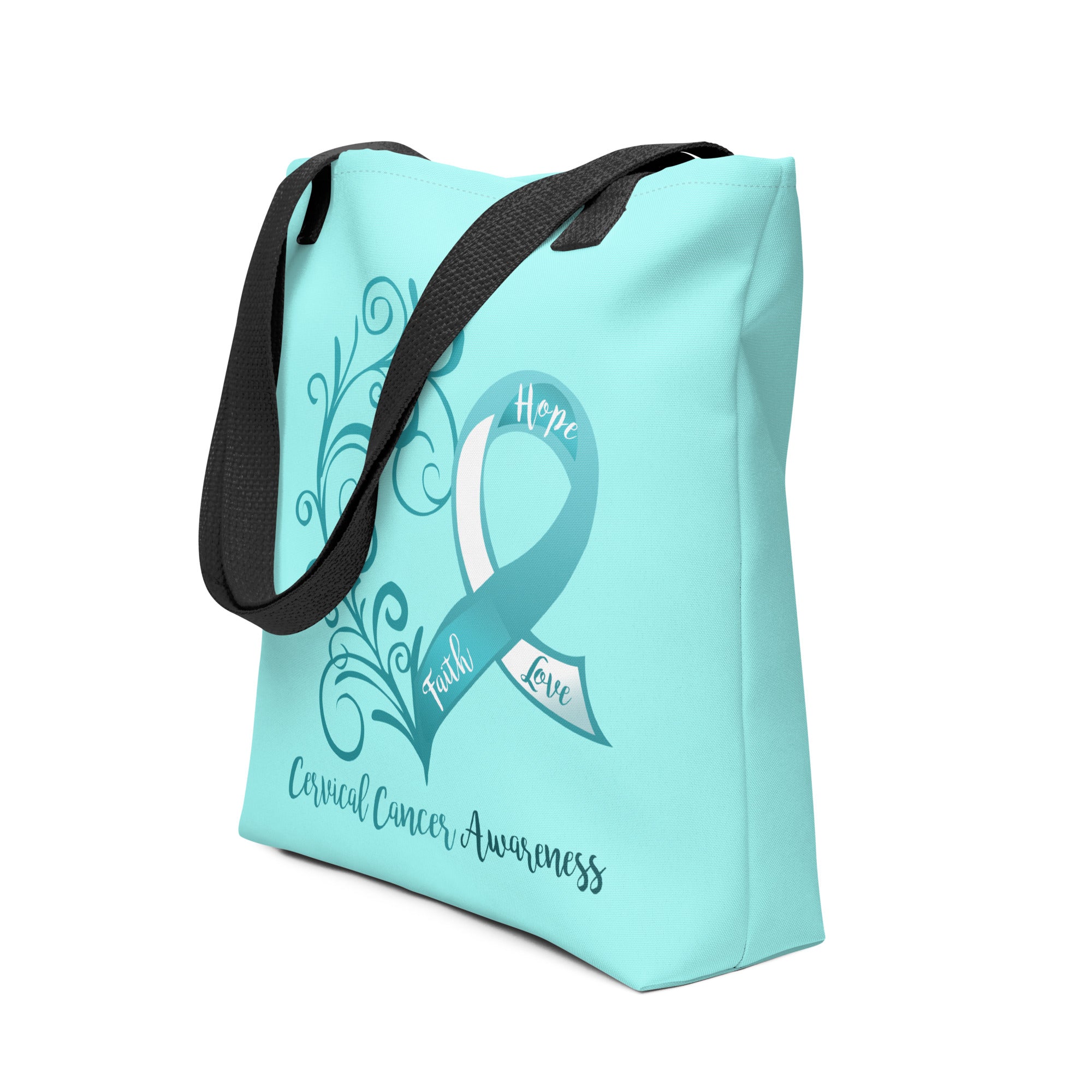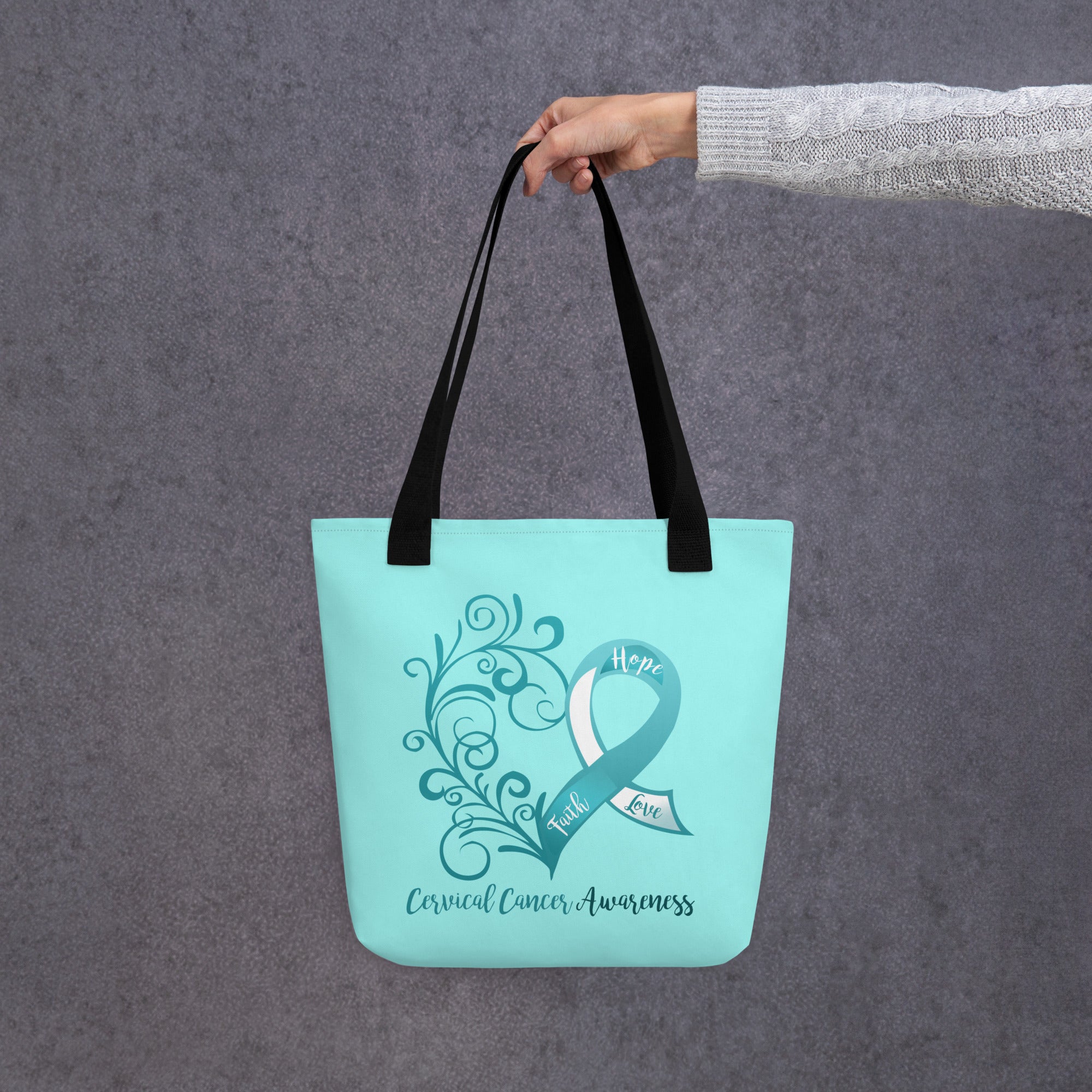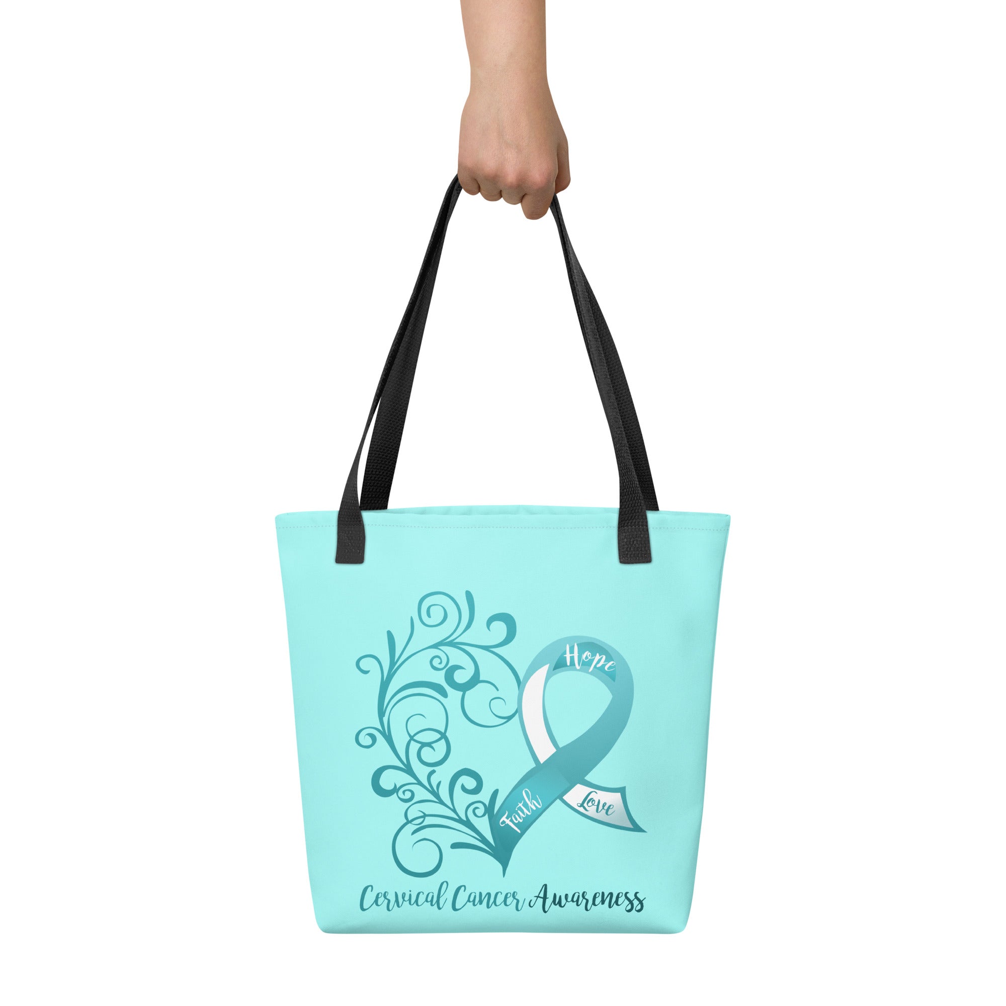 Cervical Cancer Awareness Heart Tote Bag (Light Teal) (15 x 15)
