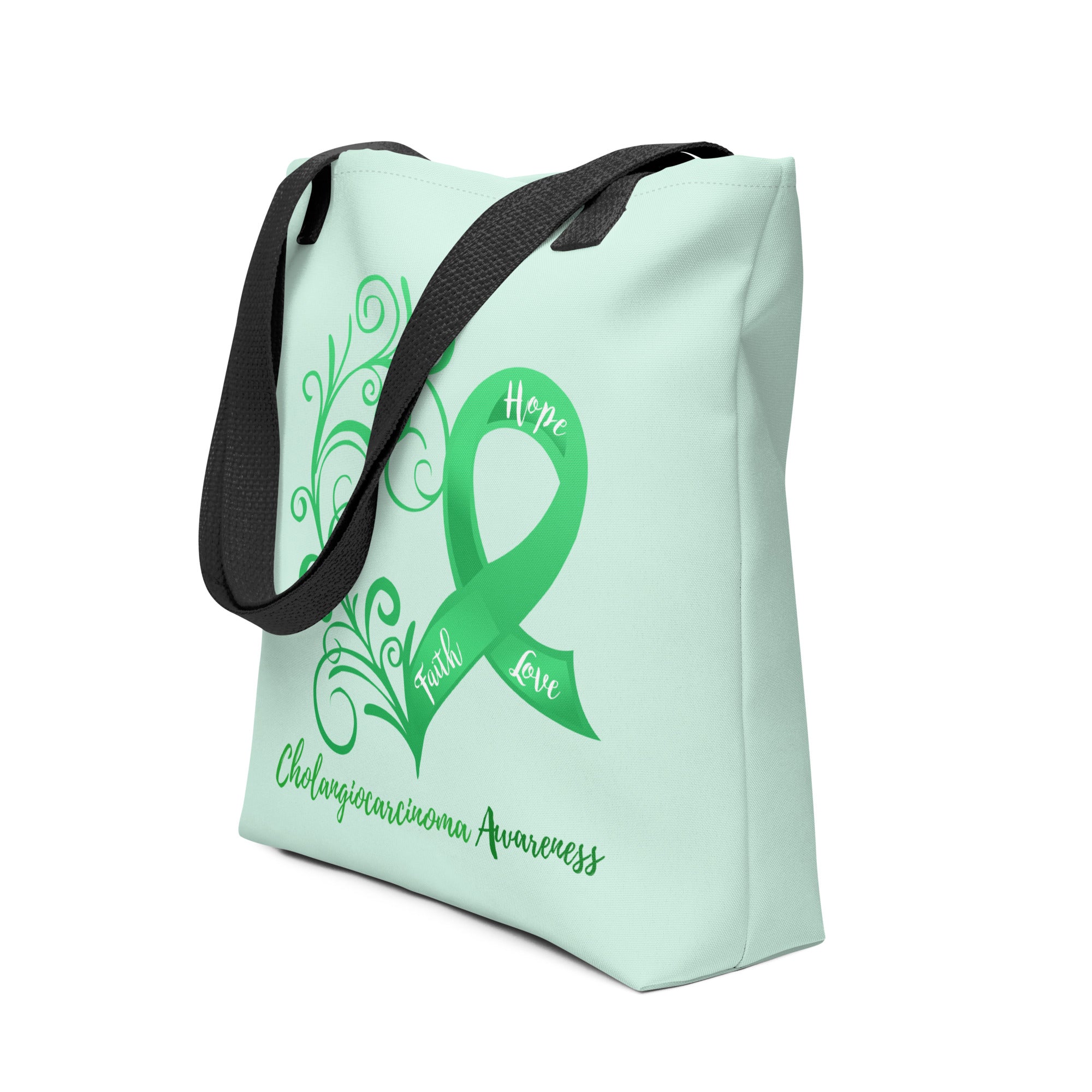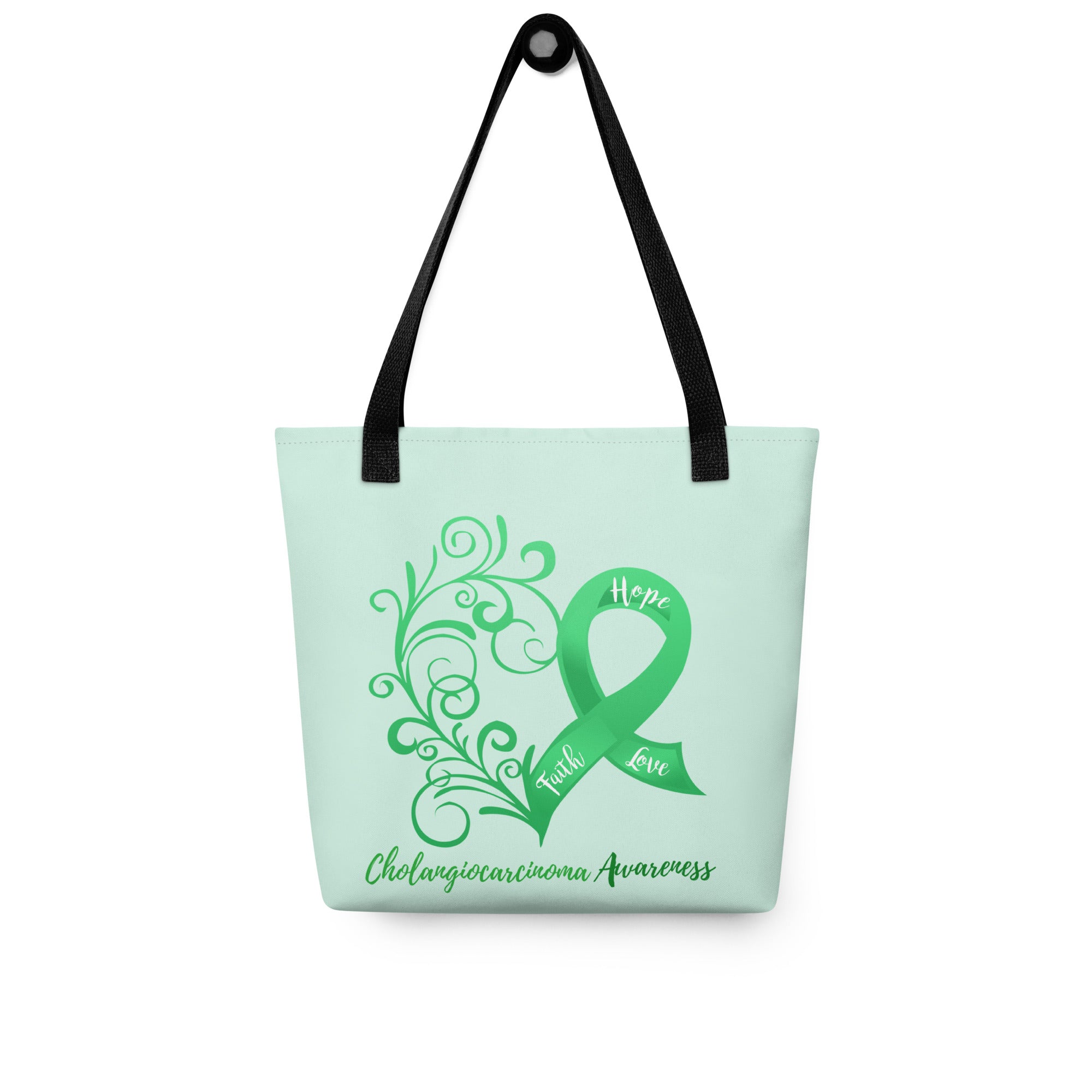 Cholangiocarcinoma Awareness Heart Tote Bag (Light Green)(15 x 15)