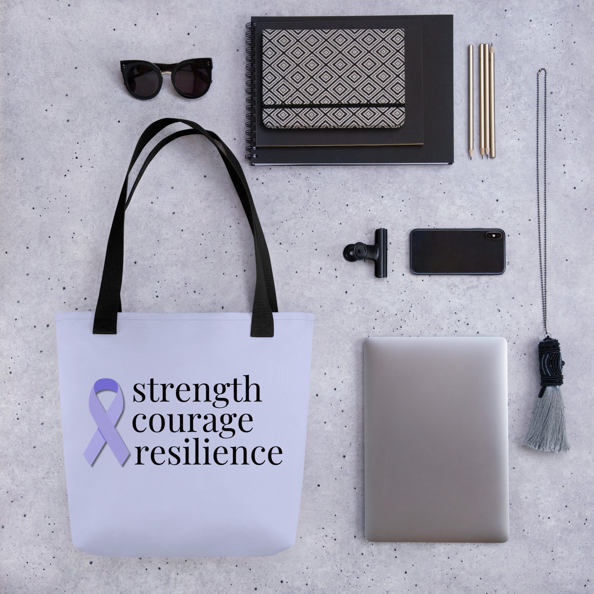 Esophageal Cancer "strength courage resilience" Tote Bag