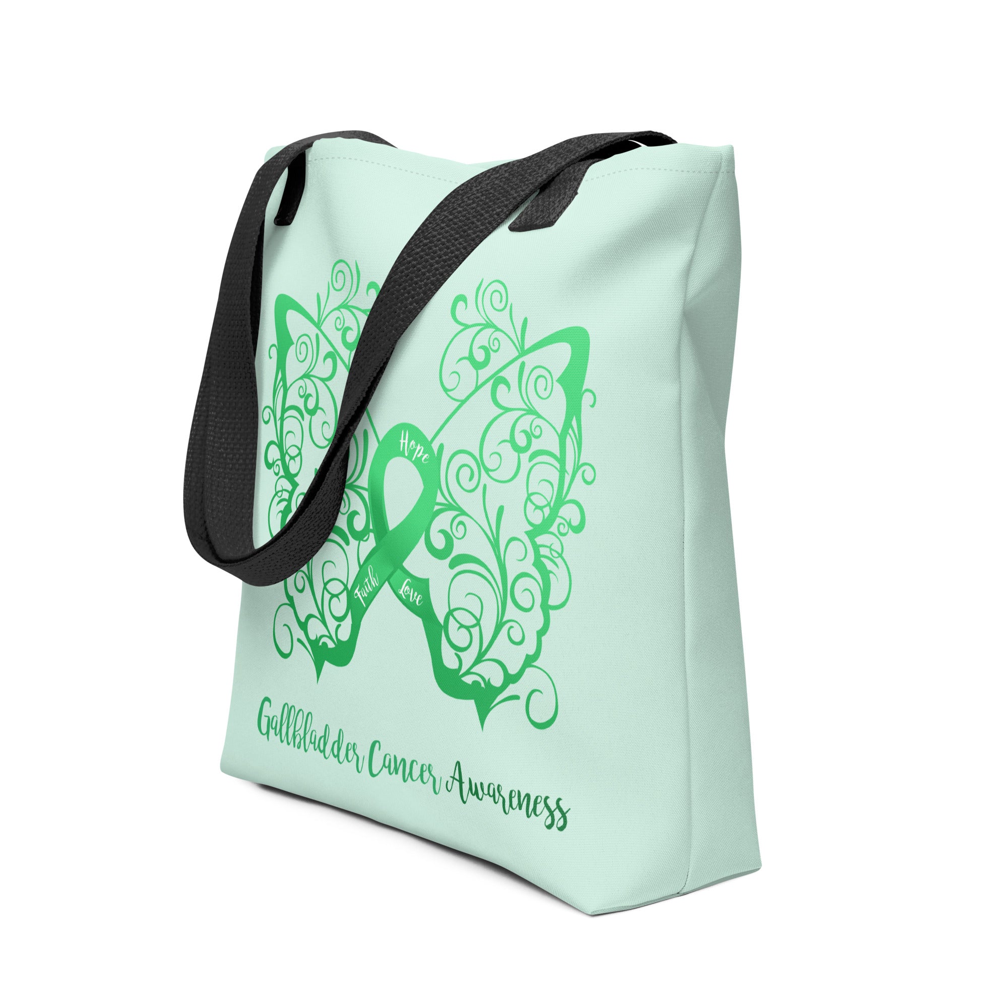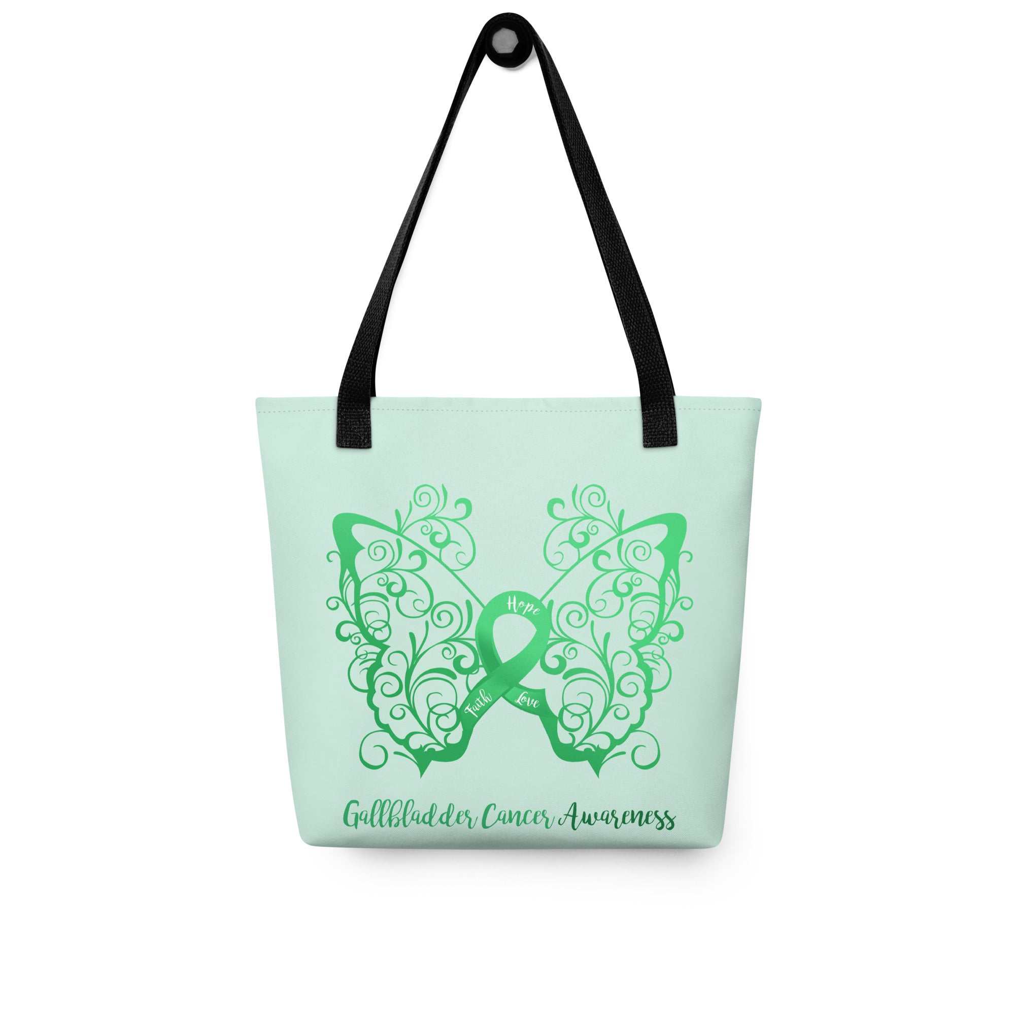 Gallbladder Awareness Filigree Butterfly Tote Bag (Light Green)(15 x 15)