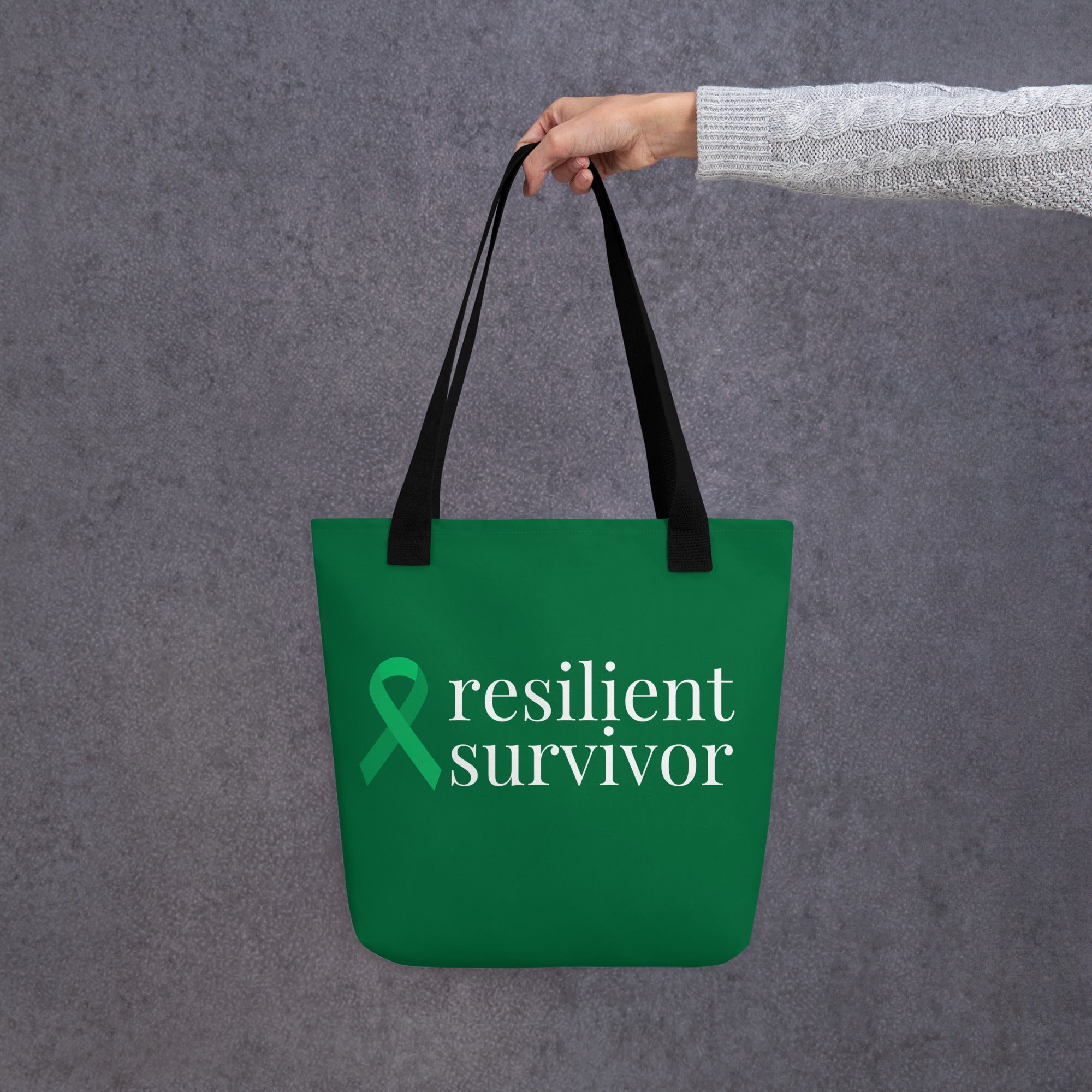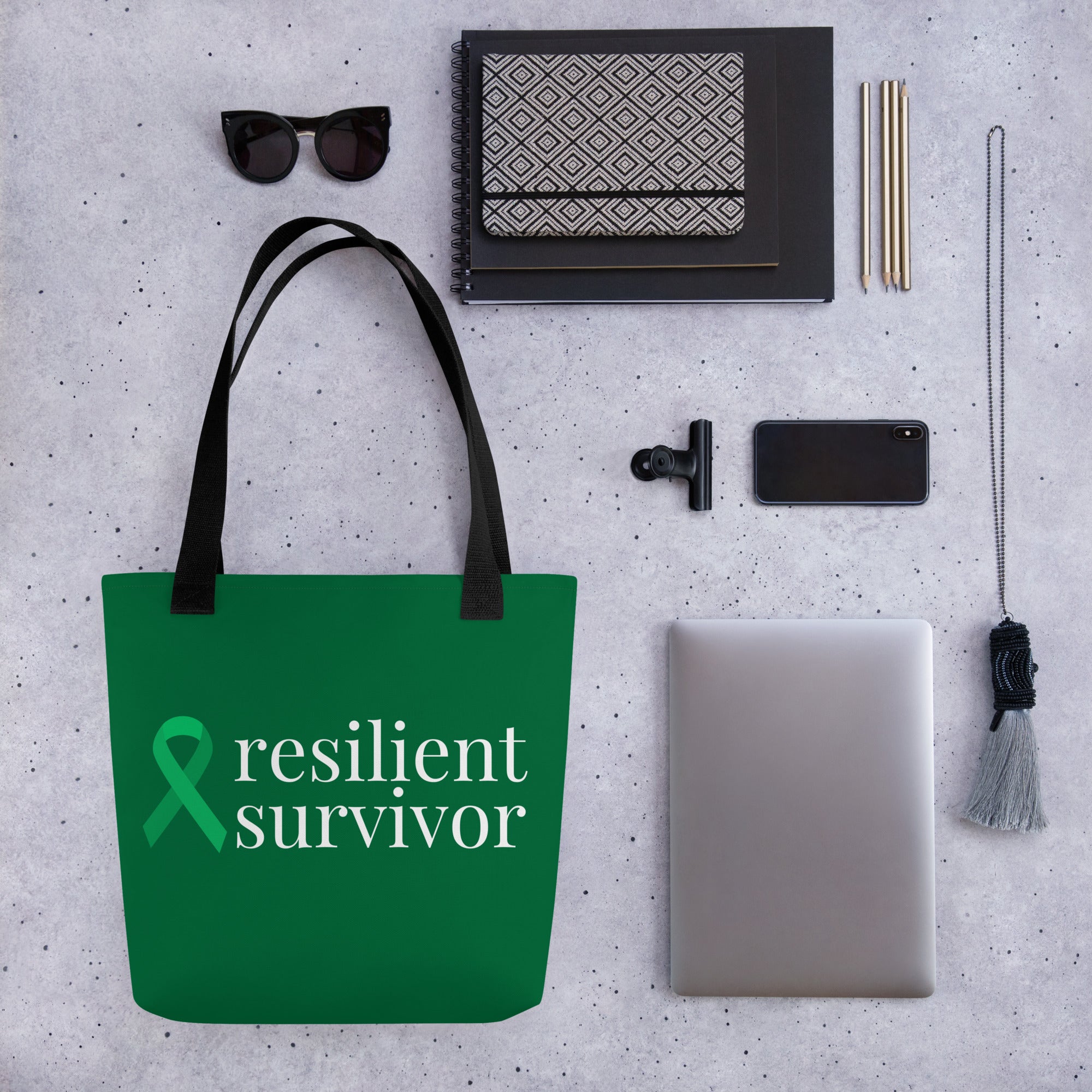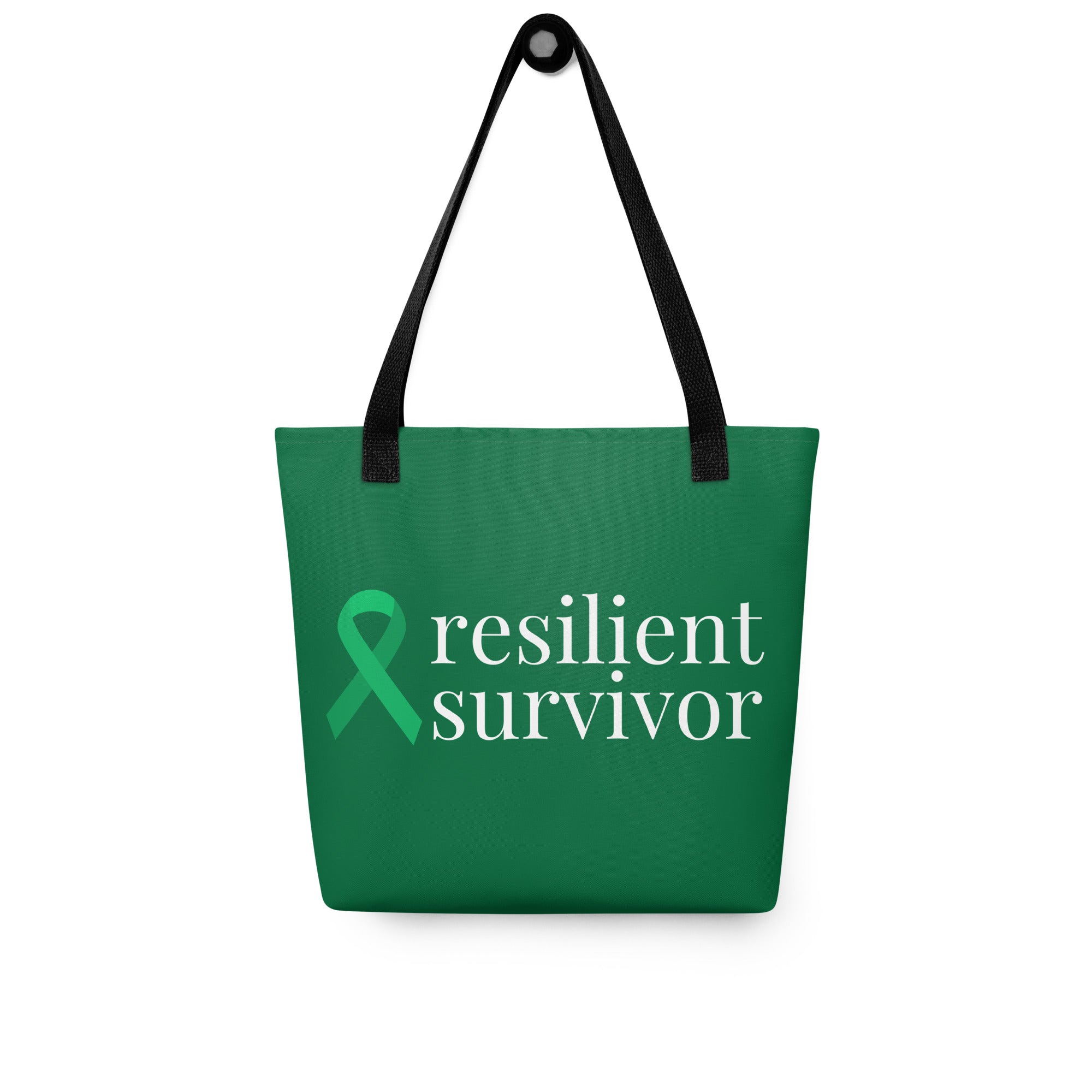 Gallbladder "resilient survivor" Ribbon Tote Bag (Green)(15 x 15)