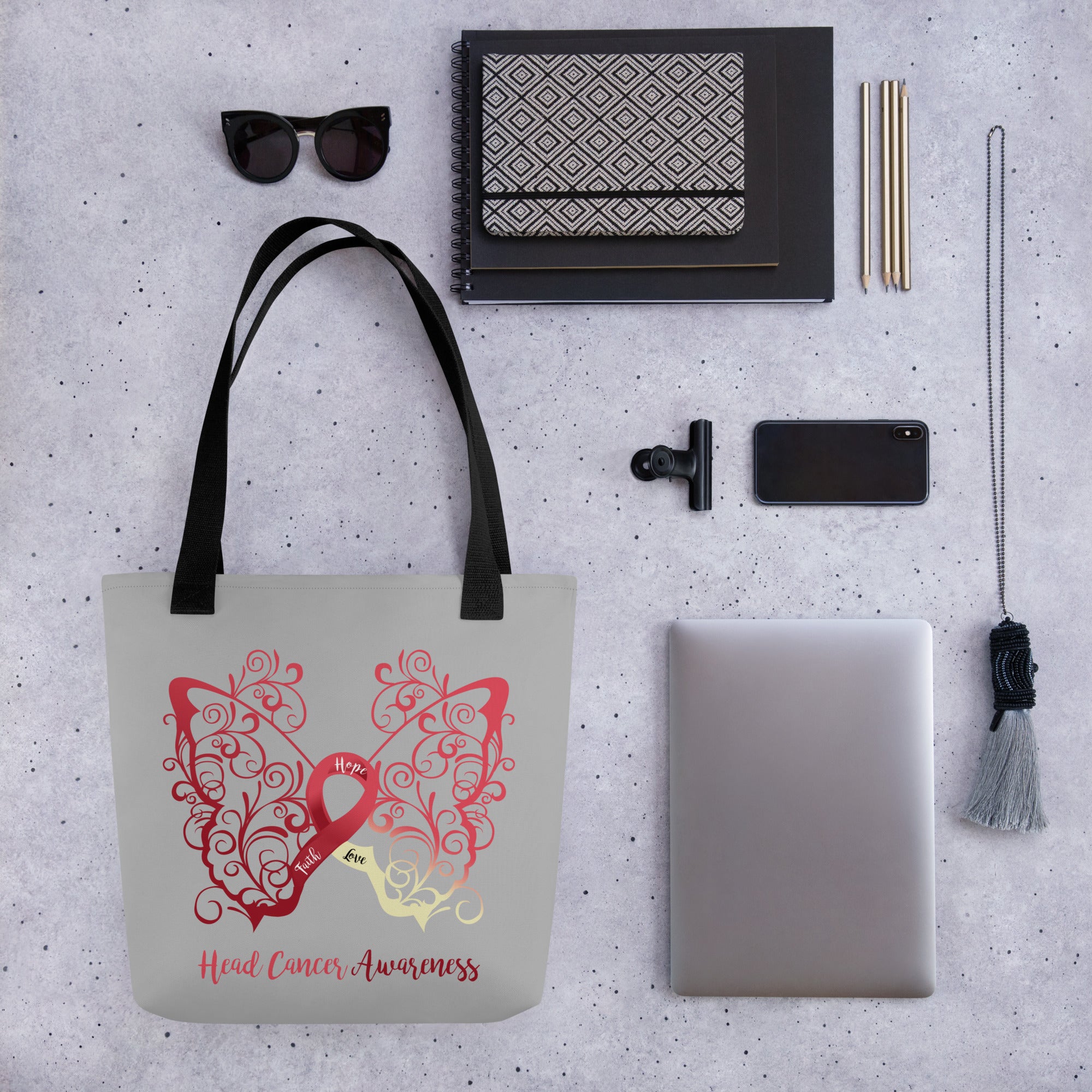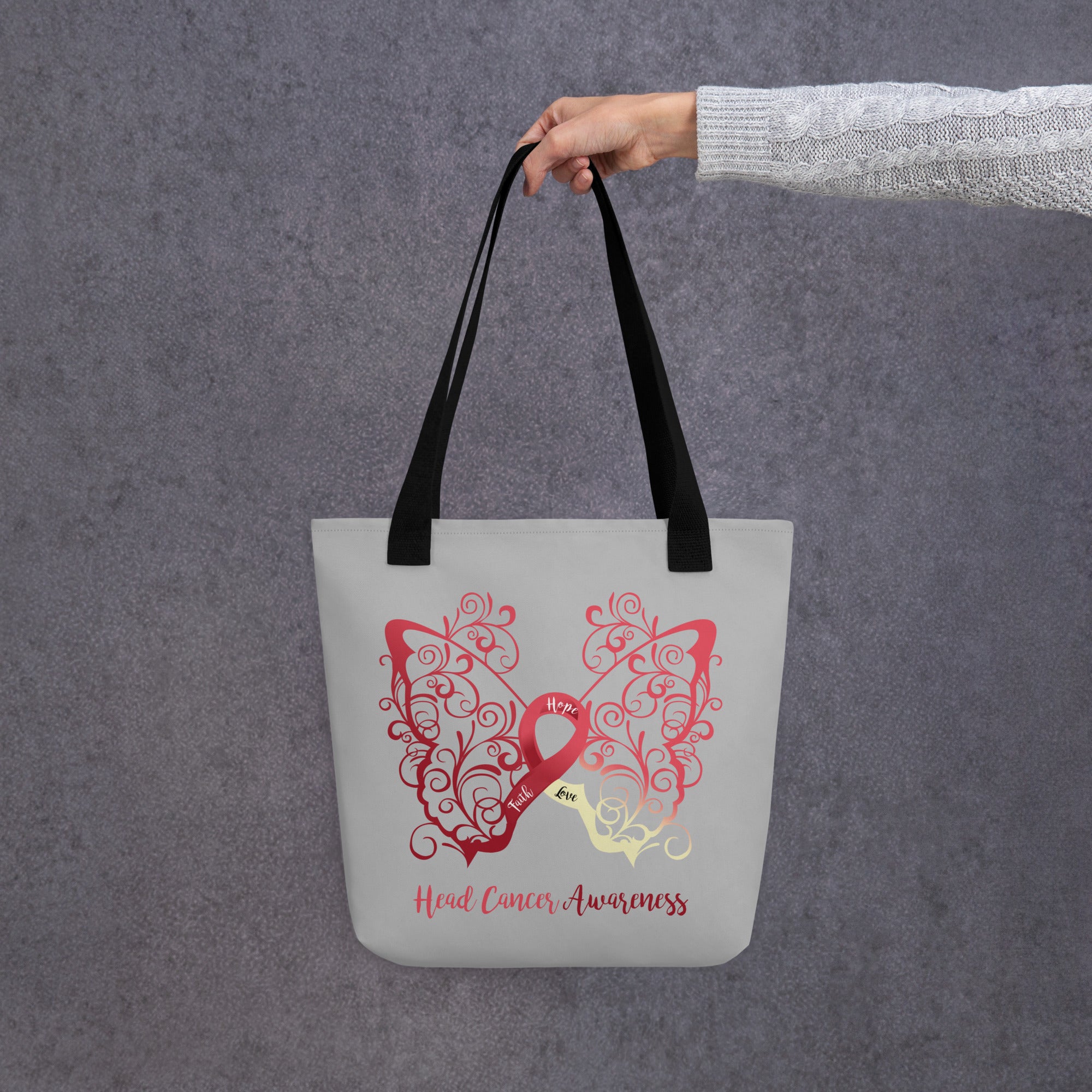 Head Cancer Awareness Filigree Butterfly Tote Bag (Grey)(15 x 15)