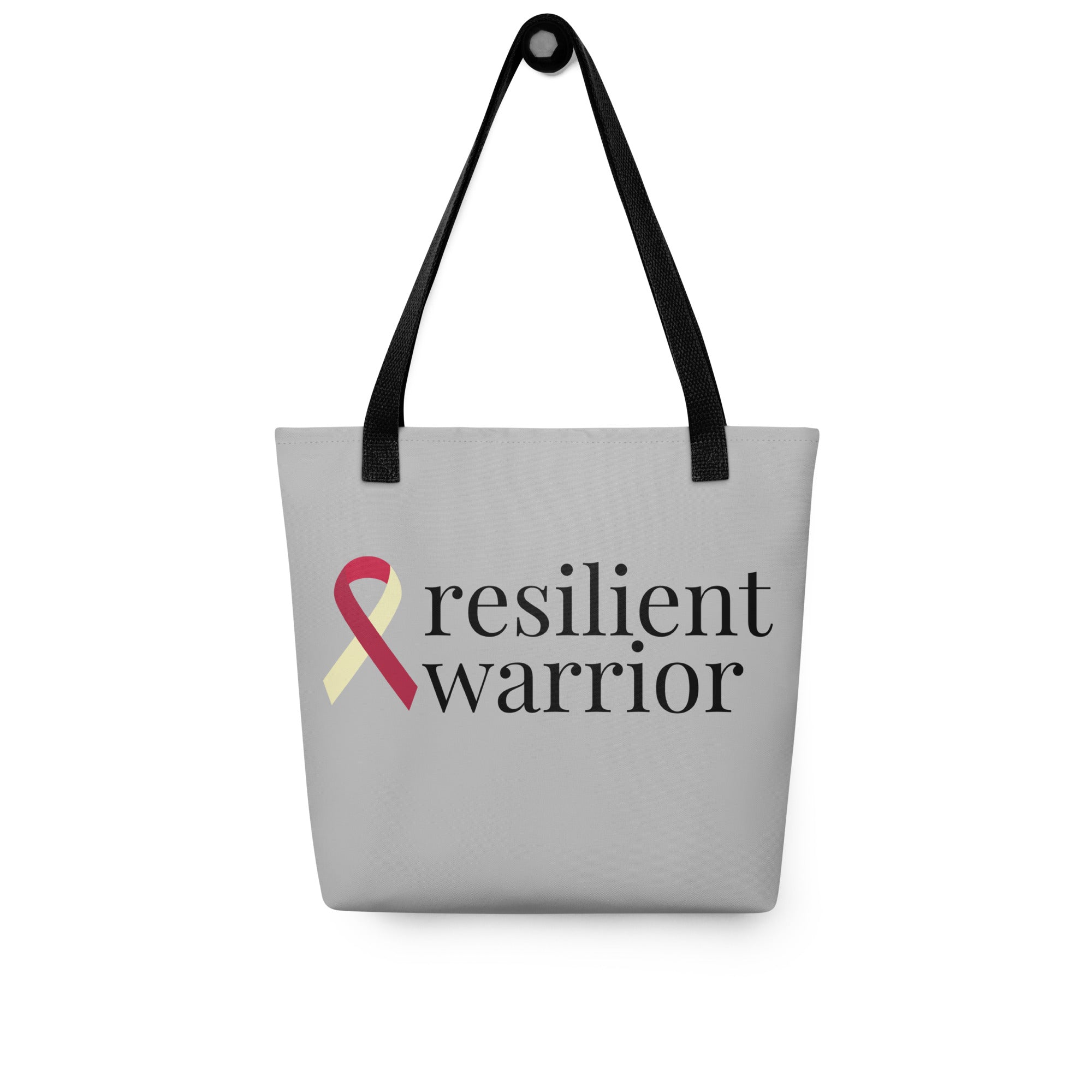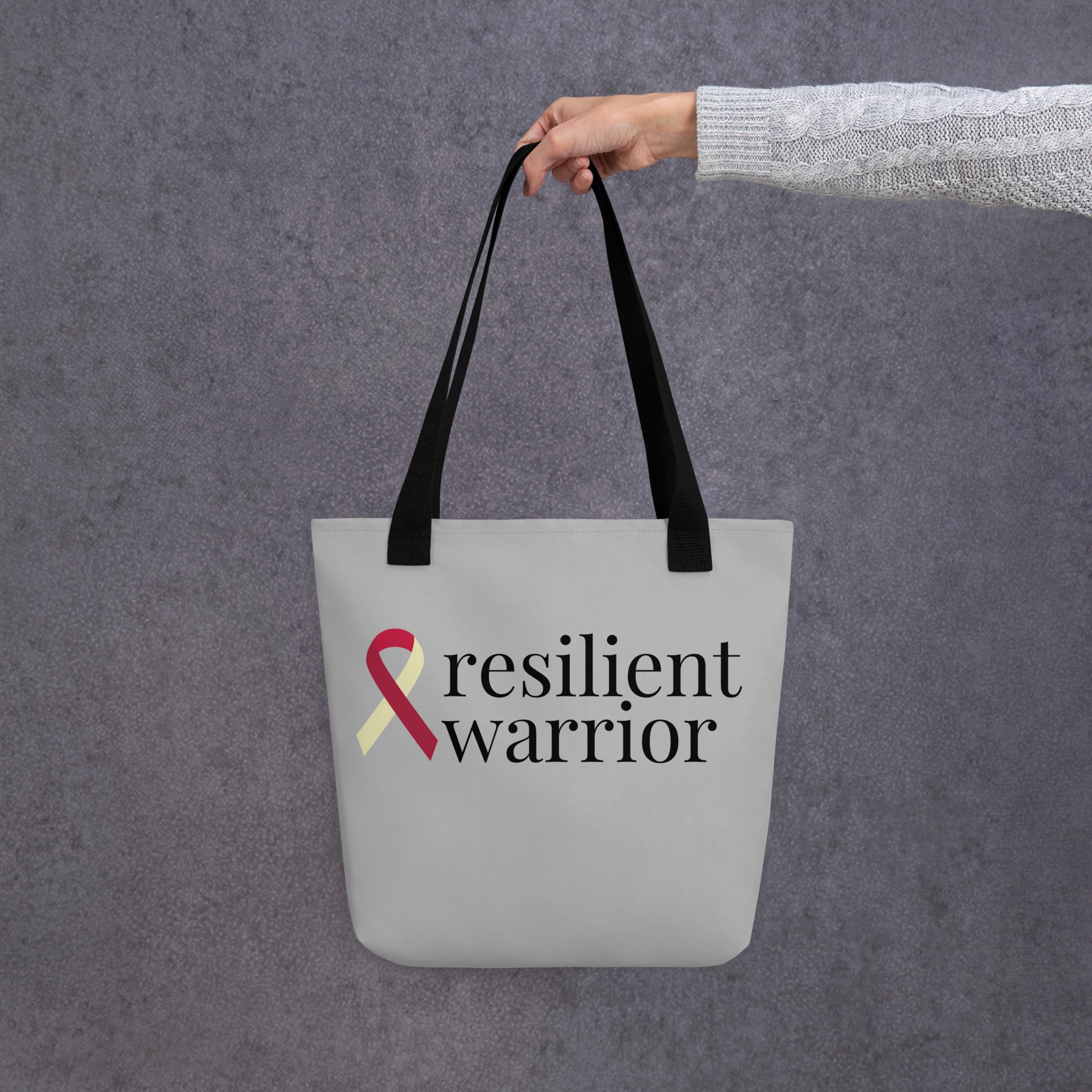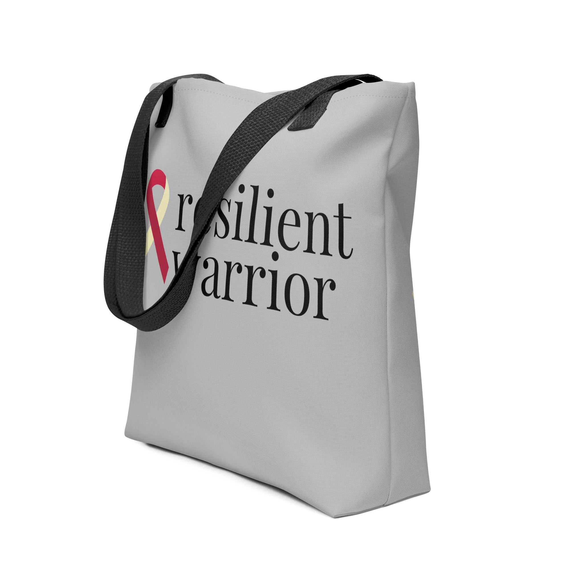 Head Neck Throat "resilient warrior" Ribbon Tote Bag (Grey)(15 x 15)