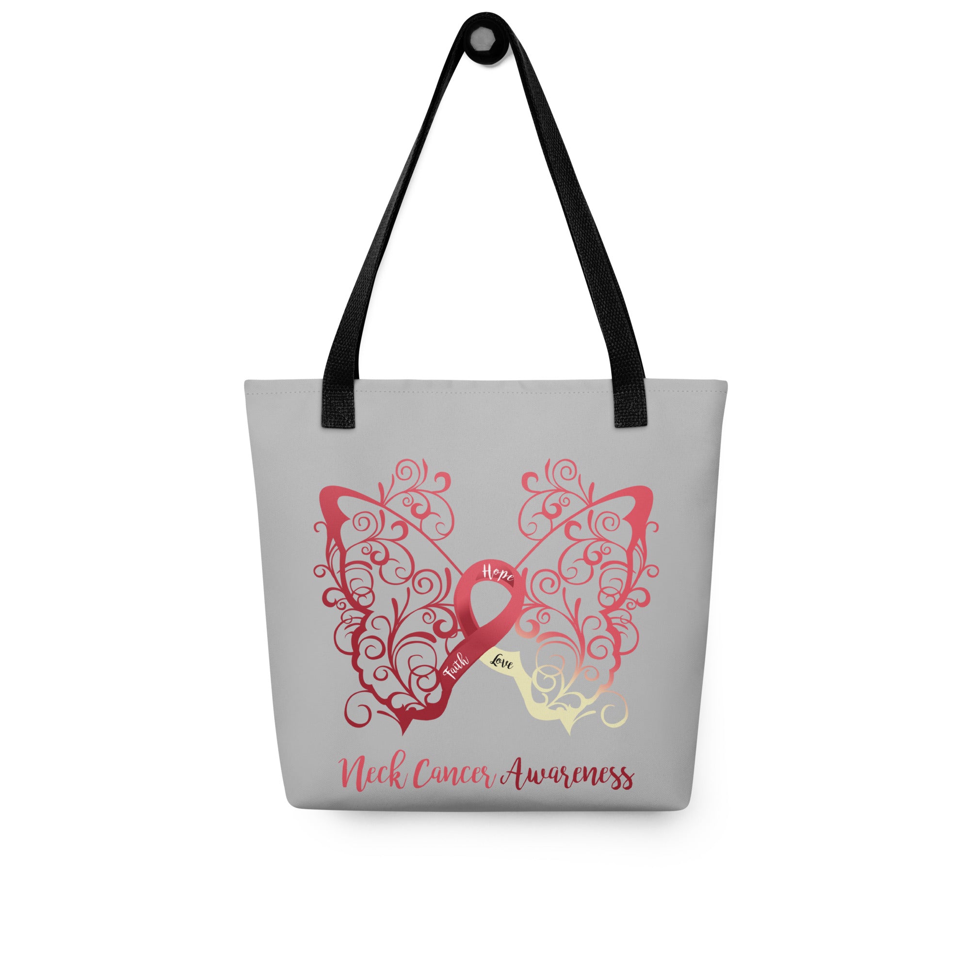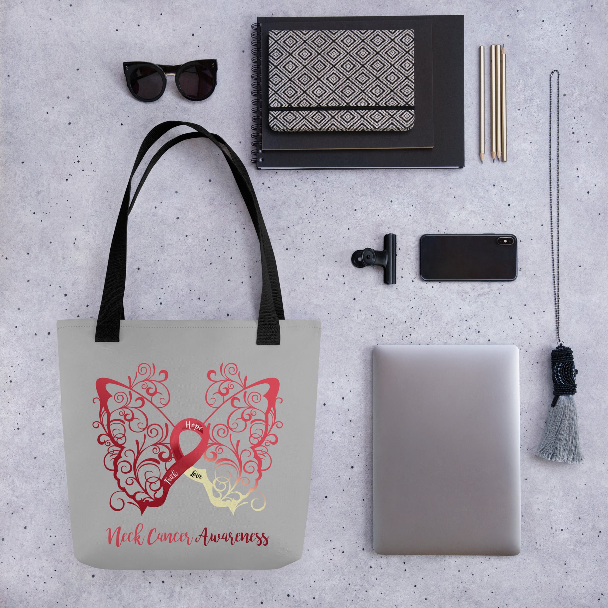 Neck Cancer Awareness Filigree Butterfly Tote Bag (Grey)(15 x 15)