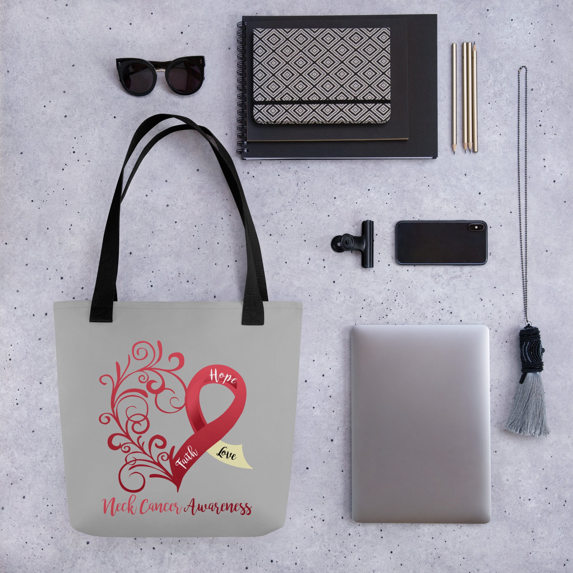 Neck Cancer Awareness Heart Tote Bag (Grey)(15 x 15)