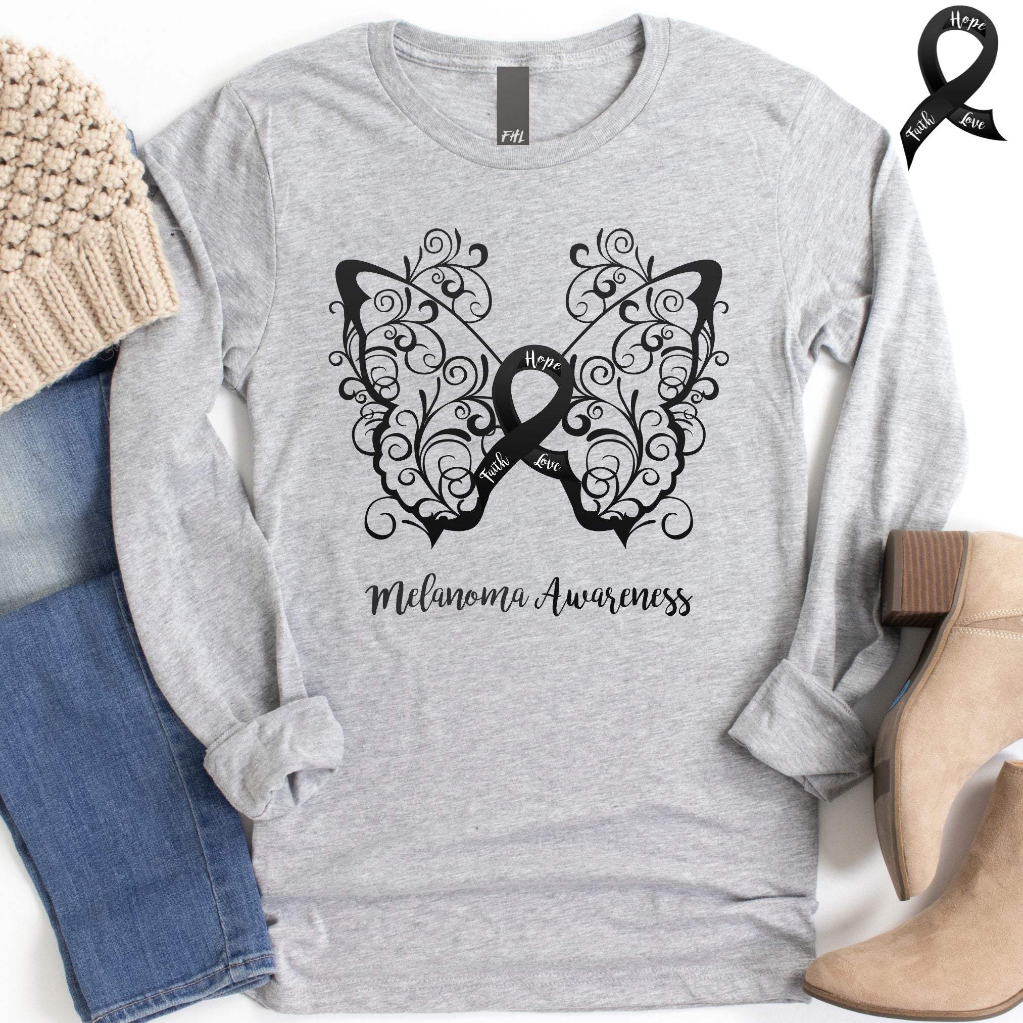 Melanoma Awareness Filigree Butterfly Long Sleeve Tee